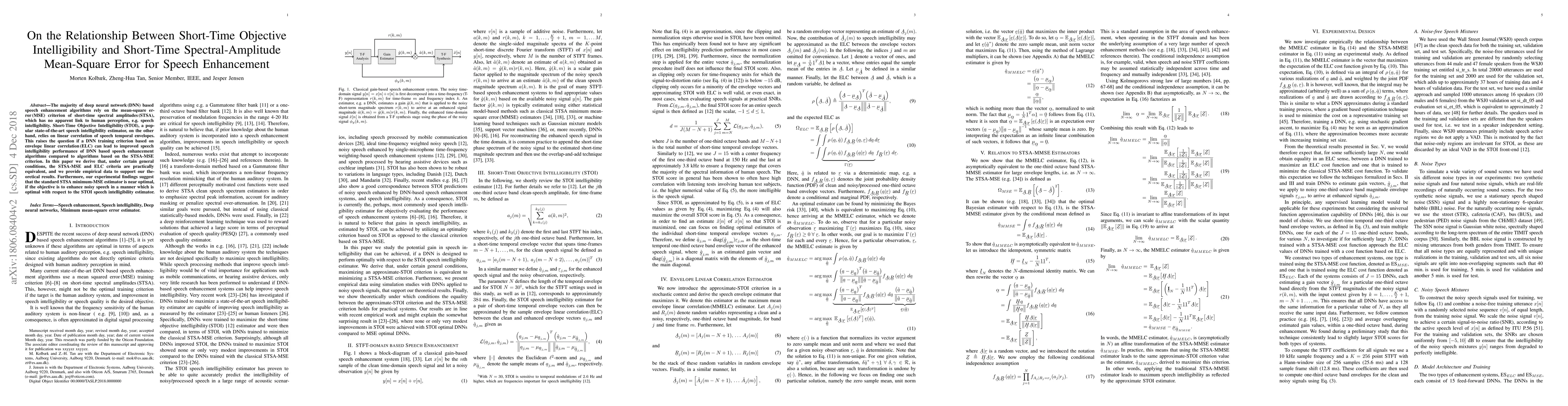This paper explores the relationship between short-time spectral-amplitude mean-square error (STSA-MSE) and Short-Time Objective Intelligibility (STOI) in DNN-based speech enhancement algorithms. It concludes that under certain conditions, both criteria are practically equivalent, and the STSA-MSE criterion is near optimal for enhancing speech intelligibility as measured by STOI.
