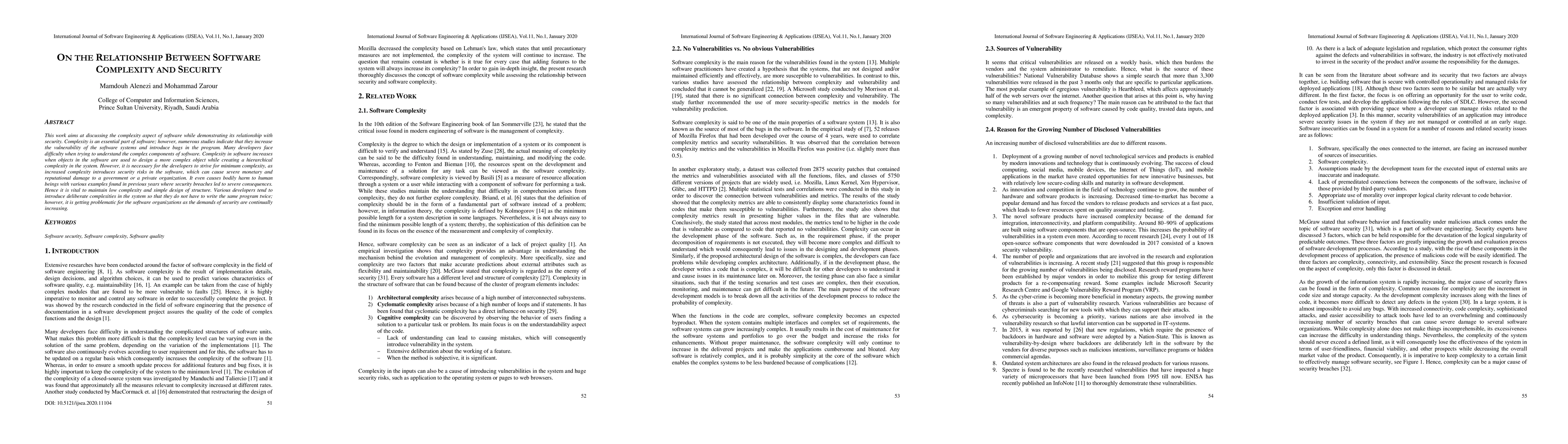 Research explores how software complexity affects security, highlighting the need for minimal complexity to prevent severe consequences such as monetary damage and bodily harm. The study emphasizes the importance of simplicity in design and structure to ensure effective security measures.
