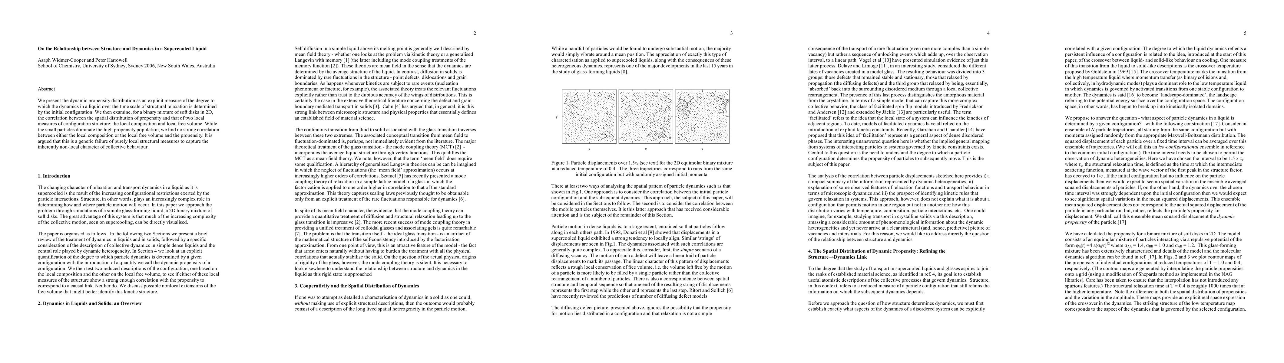 We present the dynamic propensity distribution as an explicit measure of the degree to which the dynamics in a liquid over the time scale of structural relaxation is determined by the initial configuration. We then examine, for a binary mixture of soft discs in two dimensions, the correlation between the spatial distribution of propensity and that of two localmeasures of configuration structure: the local composition and local free volume. While the small particles dominate the high propensity population,we find no strong correlation between either the local composition or the local free volume and the propensity. It is argued that this is a generic failure of purely local structural measures to capture the inherently non-local character of collective behaviour.