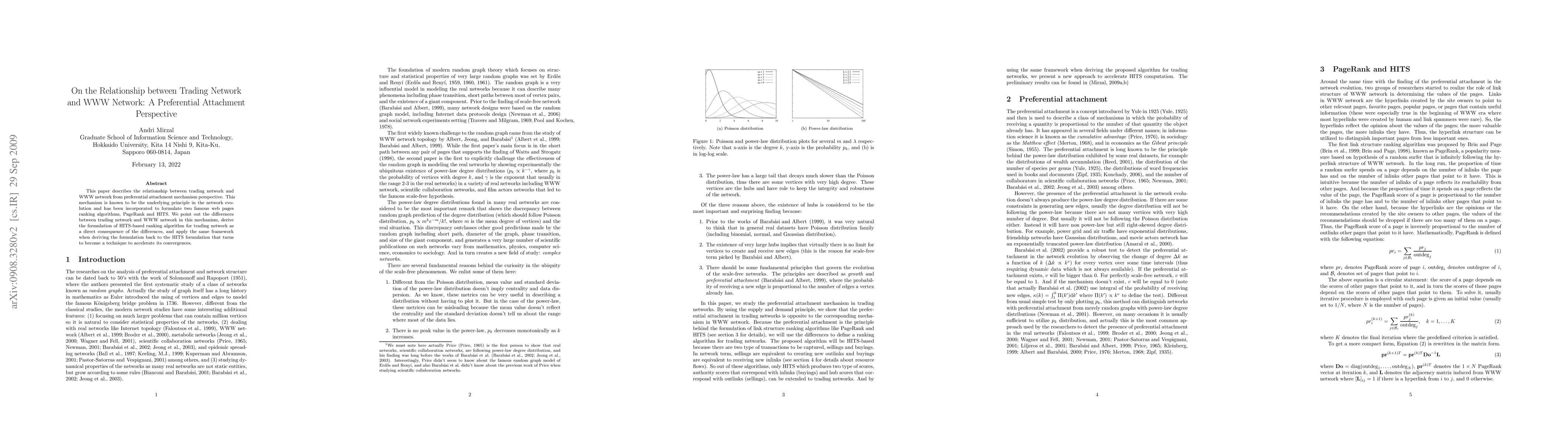 This paper explores the relationship between trading networks and WWW networks through the lens of preferential attachment, highlighting differences in their evolution. It formulates a HITS-based ranking algorithm for trading networks and revisits the HITS algorithm for the WWW to enhance convergence speed.