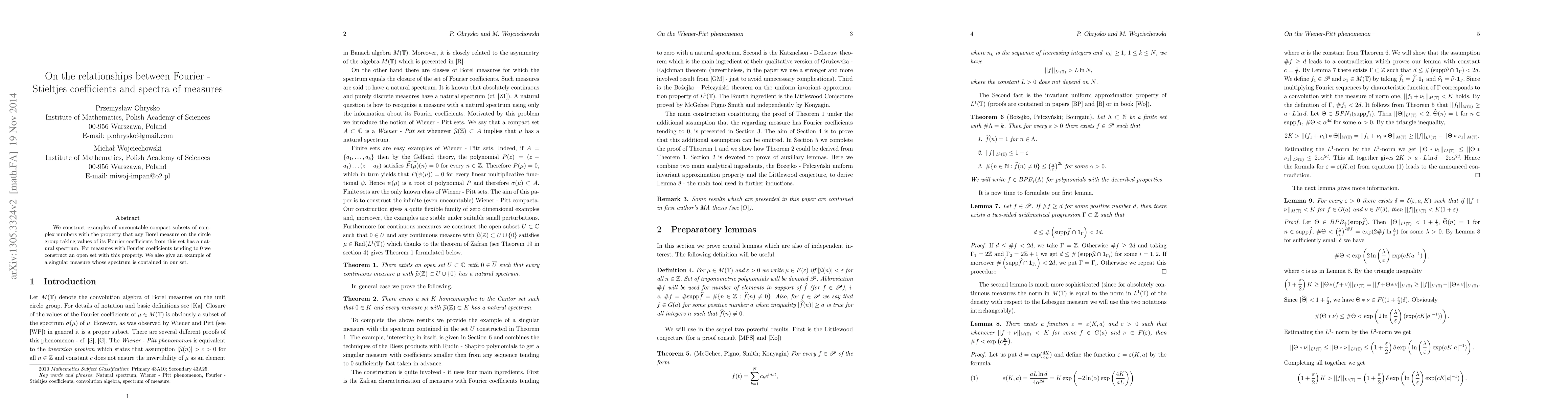 We construct examples of uncountable compact subsets of complex numbers with the property that any Borel measure on the circle group taking values of its Fourier coefficients from this set has natural spectrum. For measures with Fourier coefficients tending to 0 we construct tho open set with this property.
