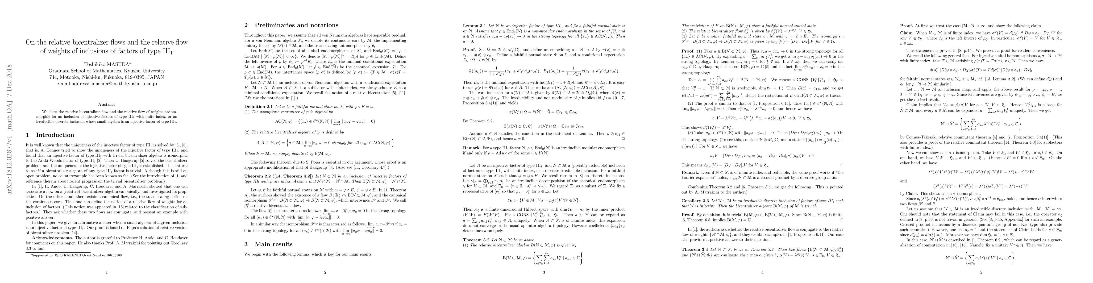 We show the relative bicentralizer flow and the relative flow of weights are isomorphic for an inclusion of injective factors of type III$_1$ with finite index, or an irreducible discrete inclusion whose small algebra is an injective factor of type III$_1$.