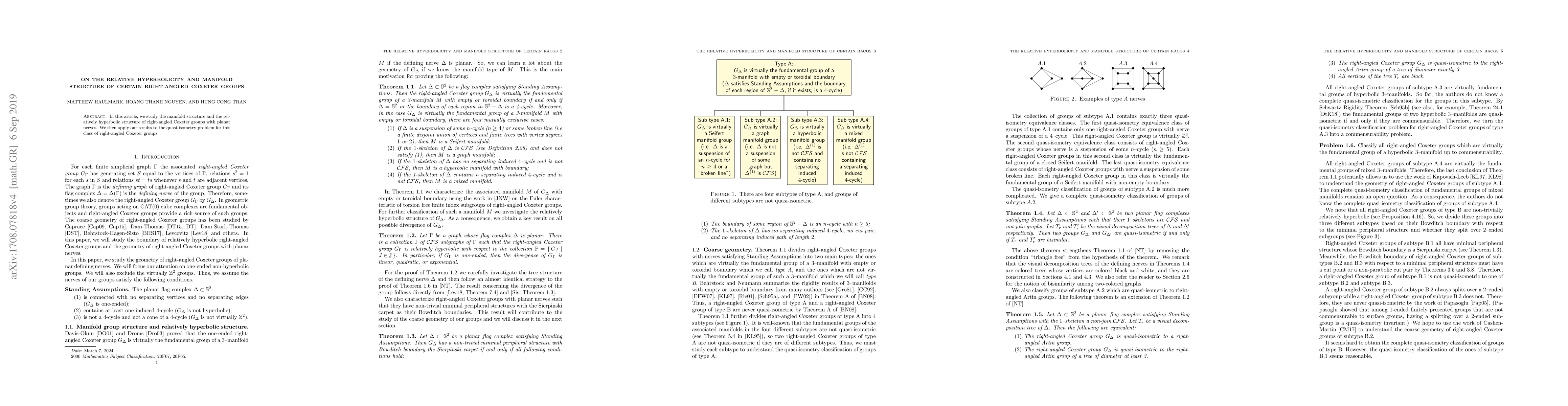 In this article, we study the manifold structure and the relatively hyperbolic structure of right-angled Coxeter groups with planar nerves. We then apply our results to the quasi-isometry problem for this class of right-angled Coxeter groups.