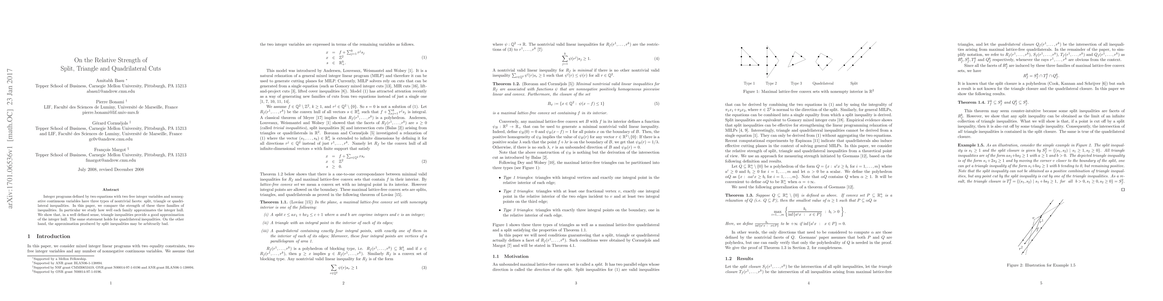 This paper compares the relative strength of split, triangle, and quadrilateral inequalities in approximating the integer hull of integer programs with two equations and two free integer variables. It finds that triangle and quadrilateral inequalities provide good approximations, while split inequalities may yield arbitrarily poor approximations.
