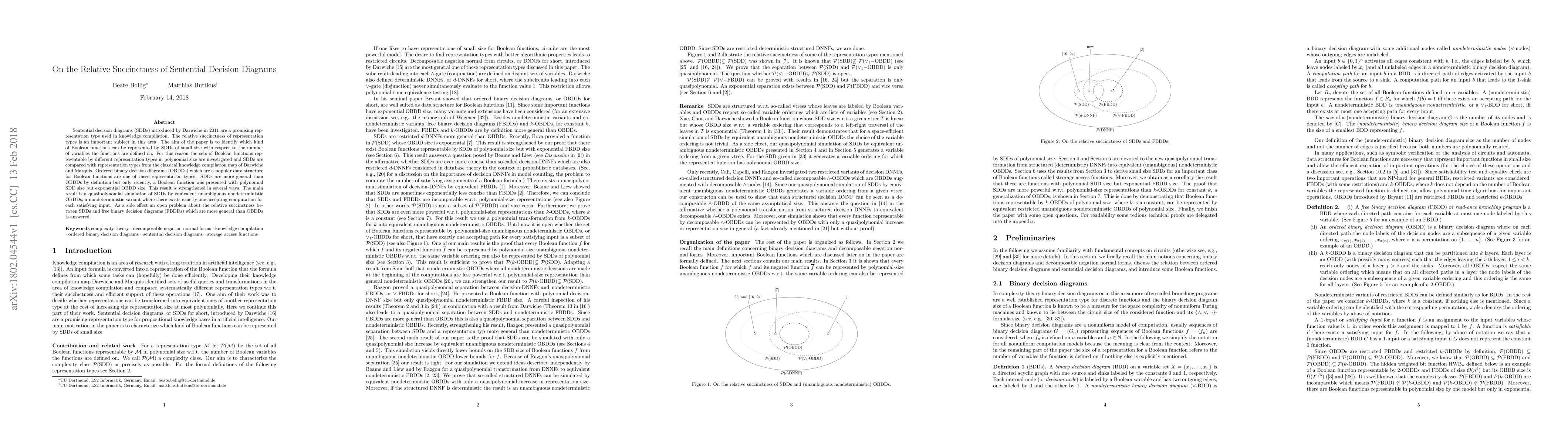 This paper investigates the relative succinctness of Sentential Decision Diagrams (SDDs) compared to Ordered Binary Decision Diagrams (OBDDs) and other classical knowledge compilation representation types. It demonstrates that SDDs can represent certain Boolean functions more succinctly than OBDDs, providing a quasipolynomial simulation of SDDs using unambiguous nondeterministic OBDDs.