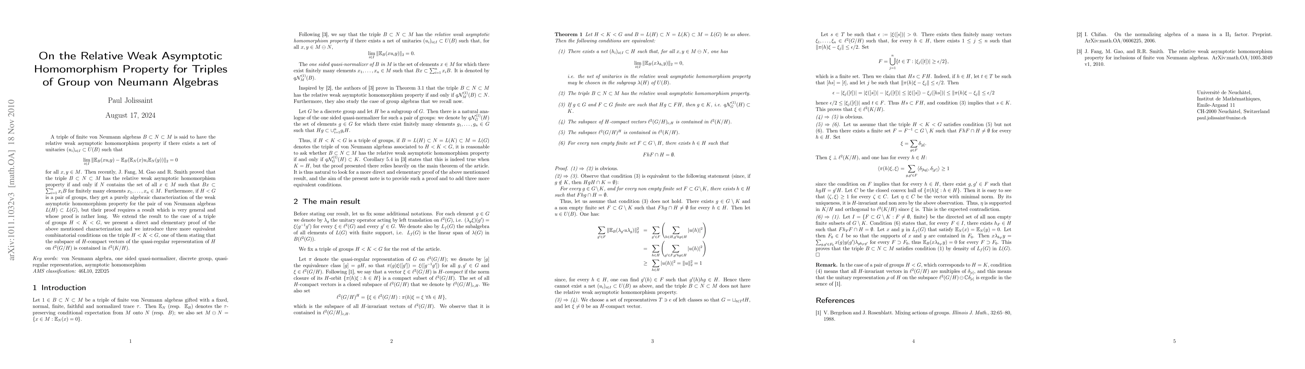 This paper offers a straightforward proof of the equivalence between the weak asymptotic homomorphism property for the group von Neumann algebras $L(H)\subset L(G)$ and the embedding of the one-sided quasi-normalizer of $H<G$, extending the result to triples of groups $H<K<G$.