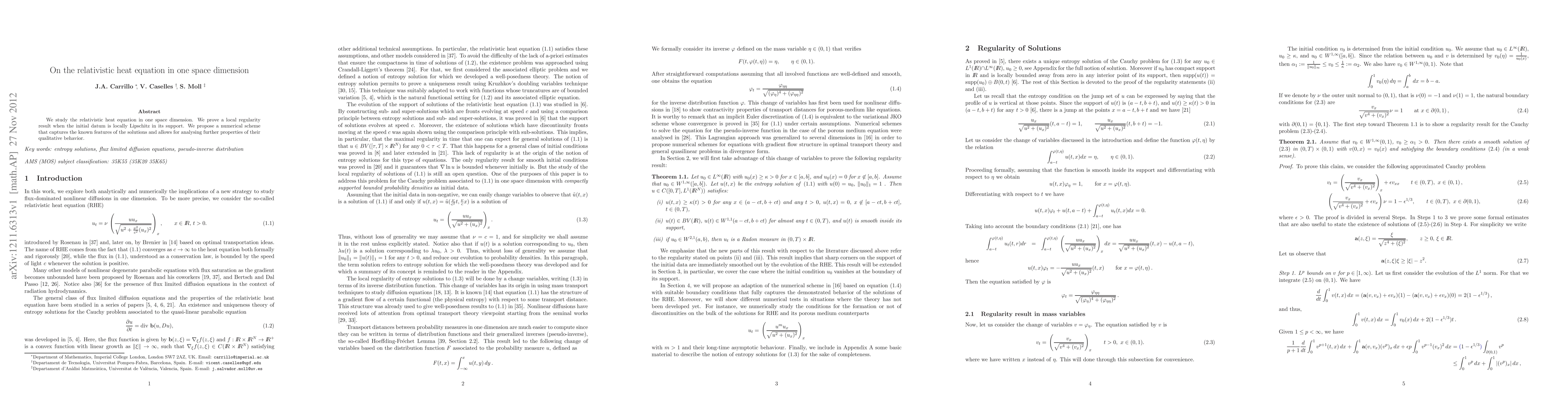 Summary: This paper proves local regularity for the relativistic heat equation in one dimension under Lipschitz initial conditions and proposes a numerical scheme to analyze its qualitative behavior.
