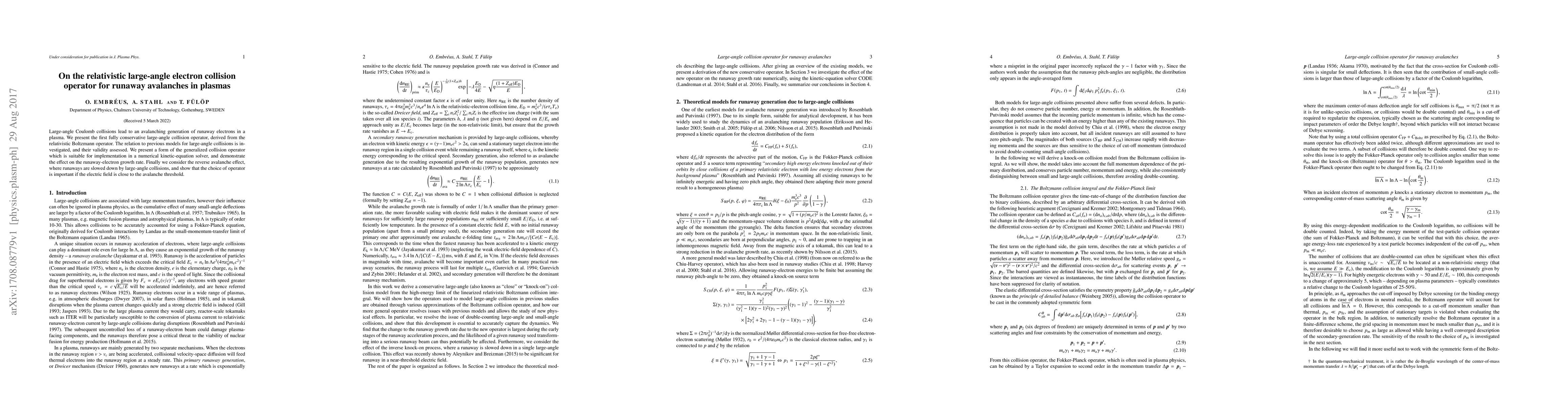 Large-angle Coulomb collisions lead to an avalanching generation of runaway electrons in a plasma. We present the first fully conservative large-angle collision operator, derived from the relativistic Boltzmann operator. The relation to previous models for large-angle collisions is investigated, and their validity assessed. We present a form of the generalized collision operator which is suitable for implementation in a numerical kinetic-equation solver, and demonstrate the effect on the runaway-electron growth rate. Finally we consider the reverse avalanche effect, where runaways are slowed down by large-angle collisions, and show that the choice of operator is important if the electric field is close to the avalanche threshold.
