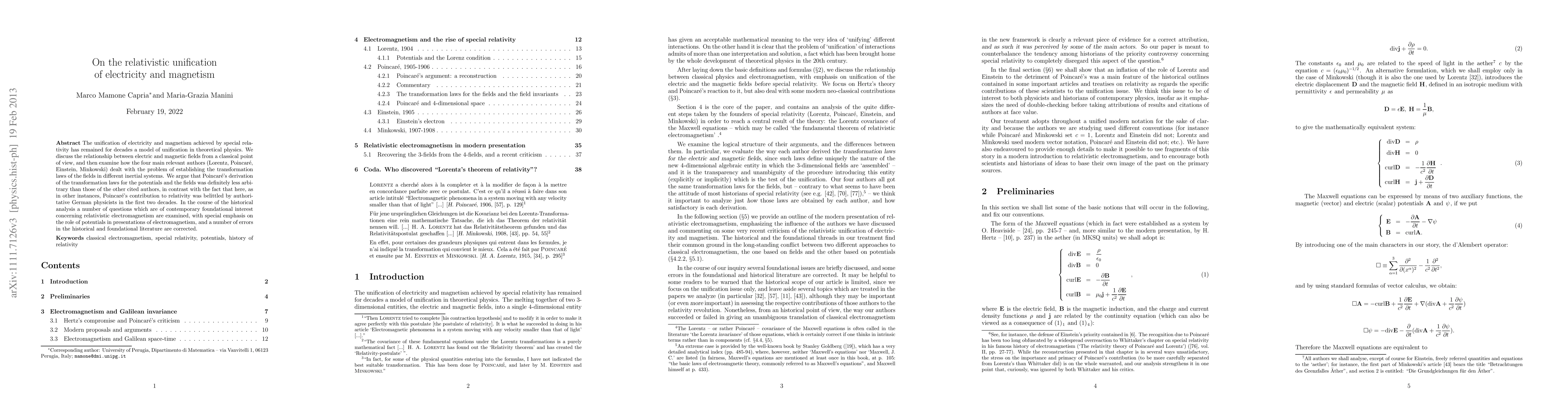 The unification of electricity and magnetism achieved by special relativity has remained for decades a model of unification in theoretical physics. We discuss the relationship between electric and magnetic fields from a classical point of view, and then examine how the four main relevant authors (Lorentz, Poincar\'e, Einstein, Minkowski) dealt with the problem of establishing the transformation laws of the fields in different inertial systems. We argue that Poincar\'e's derivation of the transformation laws for the potentials and the fields was definitely less arbitrary than those of the other cited authors, contrast this with the fact that here, as in other instances, Poincar\'e's contribution to relativity was belittled by authoritative German physicists in the first two decades. In the course of the historical analysis a number of questions which are of contemporary foundational interest concerning relativistic electromagnetism are examined, with special emphasis on the role of potentials in presentations of electromagnetism, and a number of errors in the historical and foundational literature are corrected.