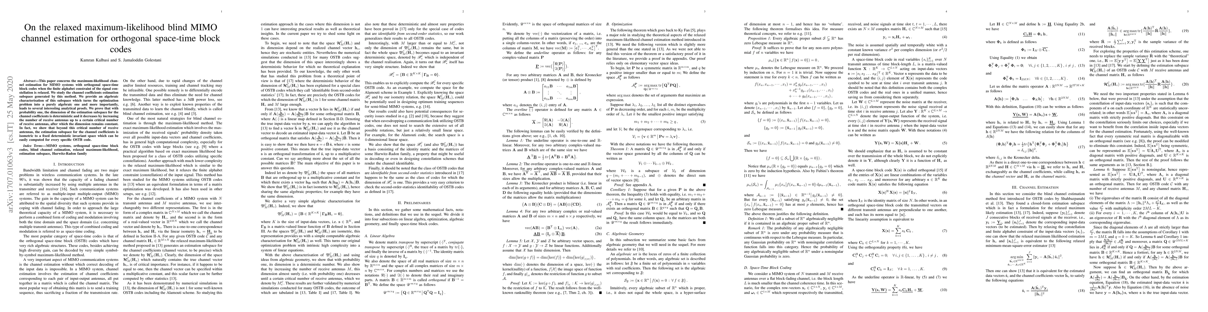 Researchers studied MIMO channel estimation for orthogonal space-time block codes, finding that beyond a critical number of receive antennas, the estimation subspace is fixed and deterministic, simplifying optimization problems.