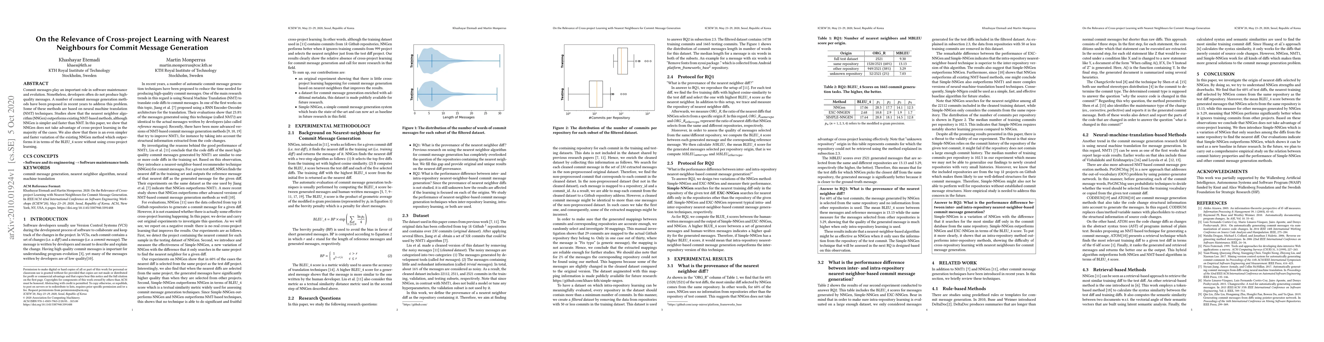 Commit messages play an important role in software maintenance and evolution. Nonetheless, developers often do not produce high-quality messages. A number of commit message generation methods have been proposed in recent years to address this problem. Some of these methods are based on neural machine translation (NMT) techniques. Studies show that the nearest neighbor algorithm (NNGen) outperforms existing NMT-based methods, although NNGen is simpler and faster than NMT. In this paper, we show that NNGen does not take advantage of cross-project learning in the majority of the cases. We also show that there is an even simpler and faster variation of the existing NNGen method which outperforms it in terms of the BLEU_4 score without using cross-project learning.