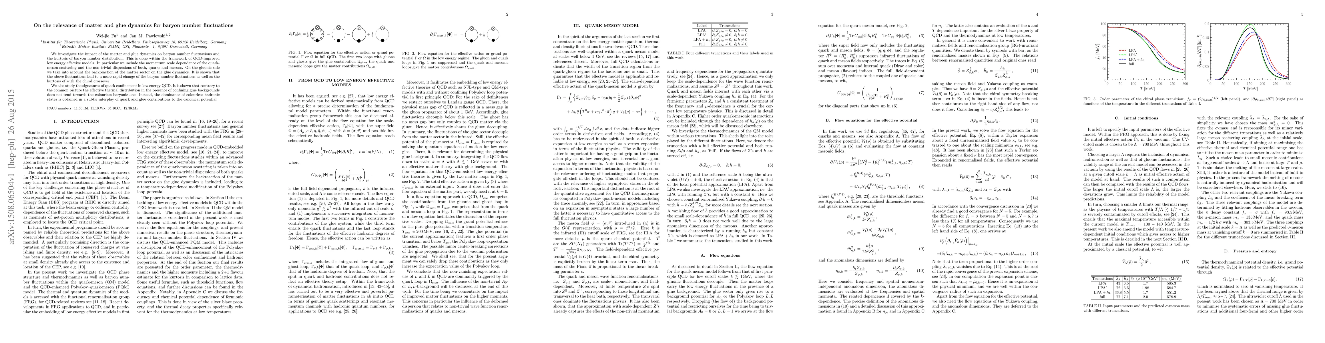 We investigate the impact of the matter and glue dynamics on baryon number fluctuations and the kurtosis of baryon number distribution. This is done within the framework of QCD-improved low energy effective models. In particular we include the momentum scale dependence of the quark-meson scattering and the non-trivial dispersions of both, quarks and mesons. On the gluonic side we take into account the backreaction of the matter sector on the glue dynamics. It is shown that the above fluctuations lead to a more rapid change of the baryon number fluctuations as well as the kurtosis of with the chiral crossover. We also study the signatures of quark confinement in low energy QCD. It is shown that contrary to the common picture the effective thermal distribution in the presence of confining glue backgrounds does not tend towards the colourless baryonic one. Instead, the dominance of colourless hadronic states is obtained in a subtle interplay of quark and glue contributions to the canonical potential.