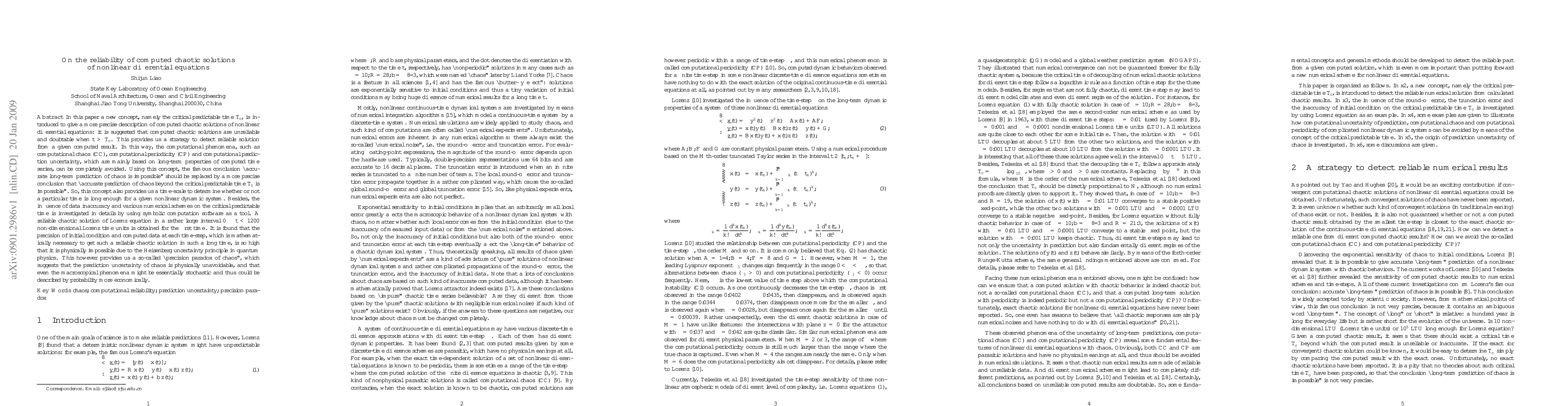 This paper introduces the critical predictable time $T_c$ to assess the reliability of computed chaotic solutions in nonlinear differential equations, suggesting that solutions become unreliable beyond $T_c$. It proposes a strategy to detect reliable solutions and avoid computational phenomena like computational chaos, thereby providing a time-scale for evaluating long-term properties of computed time series.