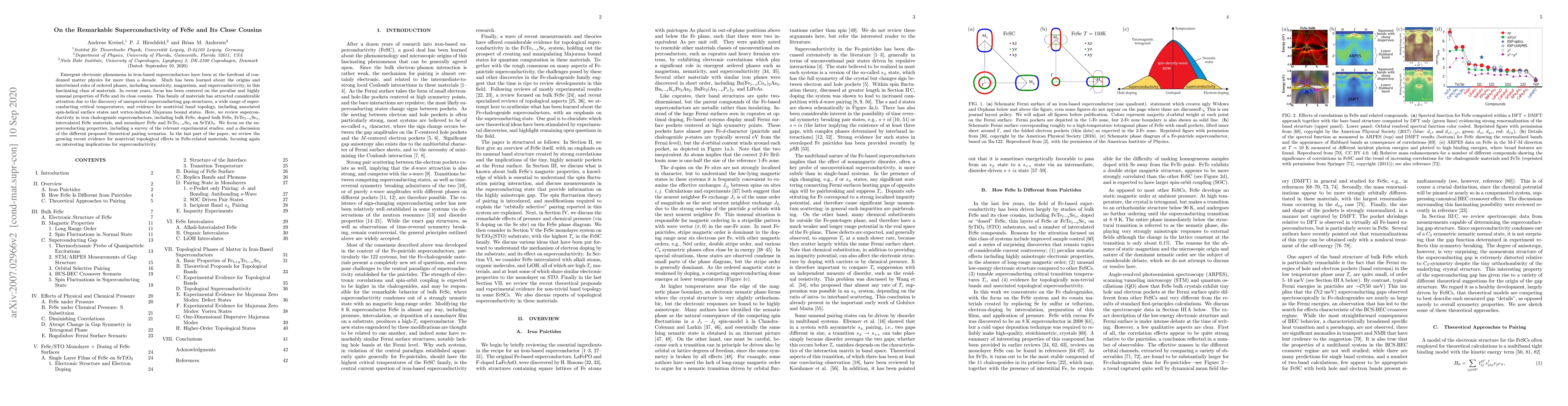 Emergent electronic phenomena in iron-based superconductors have been at the forefront of condensed matter physics for more than a decade. Much has been learned about the origin and intertwined roles of ordered phases, including nematicity, magnetism, and superconductivity, in this fascinating class of materials. In recent years, focus has been centered on the peculiar and highly unusual properties of FeSe and its close cousins. This family of materials has attracted considerable attention due to the discovery of unexpected superconducting gap structures, a wide range of superconducting critical temperatures, and evidence for nontrivial band topology, including associated spin-helical surface states and vortex-induced Majorana bound states. Here, we review superconductivity in iron chalcogenide superconductors, including bulk FeSe, doped bulk FeSe, FeTe$_{1-x}$Se$_x$, intercalated FeSe materials, and monolayer FeSe and FeTe$_{1-x}$Se$_x$ on SrTiO$_3$. We focus on the superconducting properties, including a survey of the relevant experimental studies, and a discussion of the different proposed theoretical pairing scenarios. In the last part of the paper, we review the growing recent evidence for nontrivial topological effects in FeSe-related materials, focusing again on interesting implications for superconductivity.