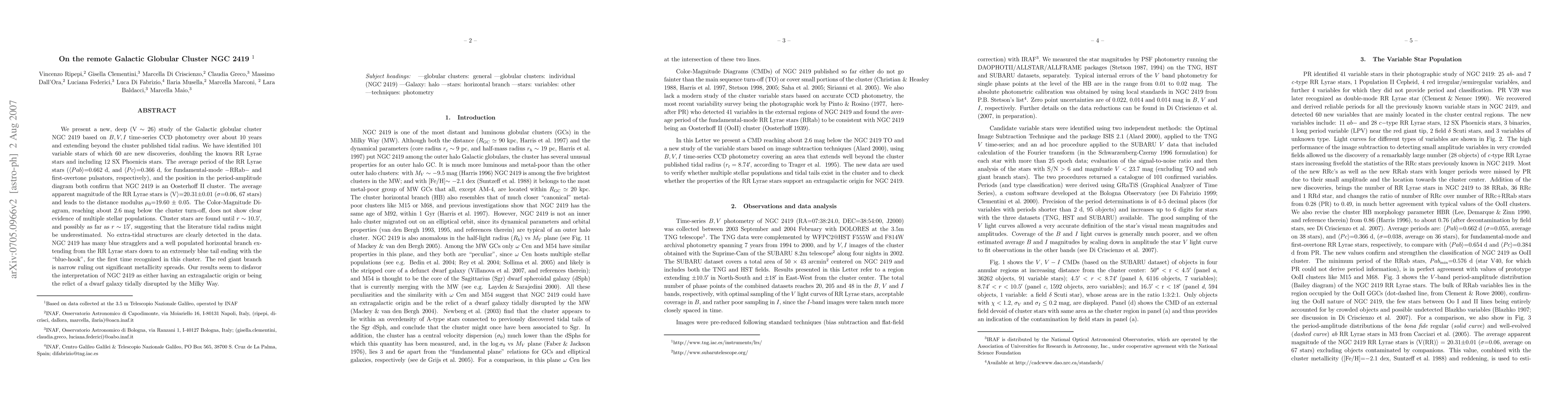 period-amplitude diagram both confirm that NGC 2419 is an Oosterhoff II