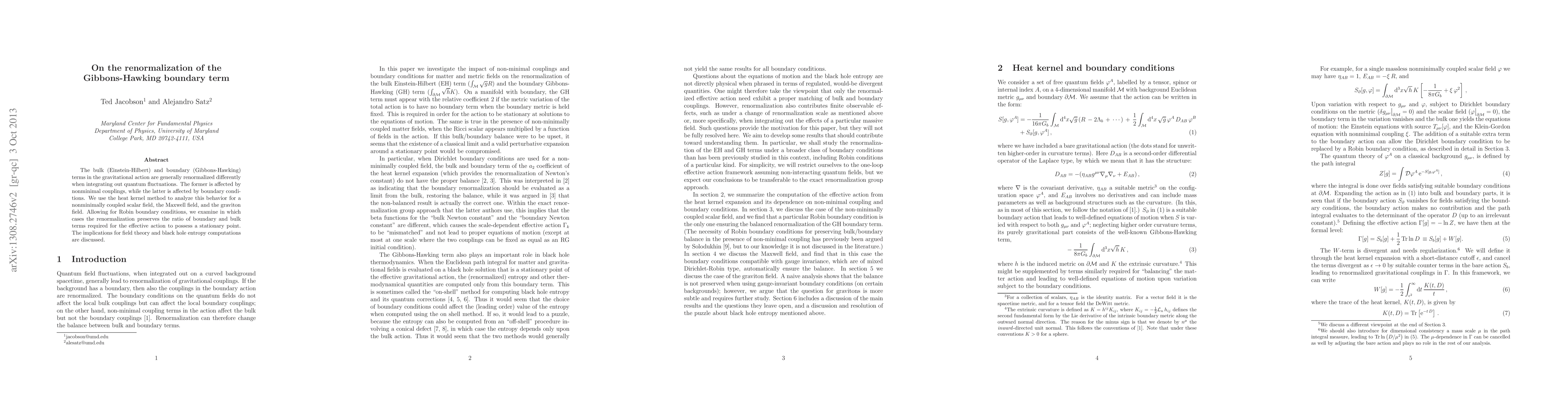 This research uses the heat kernel method to study how the Gibbons-Hawking boundary term in gravitational action renormalizes differently from the bulk term for scalar, Maxwell, and graviton fields. It explores under what Robin boundary conditions the ratio of boundary to bulk terms remains constant, preserving stationary points in the effective action, with implications for quantum field theory and black hole entropy calculations.