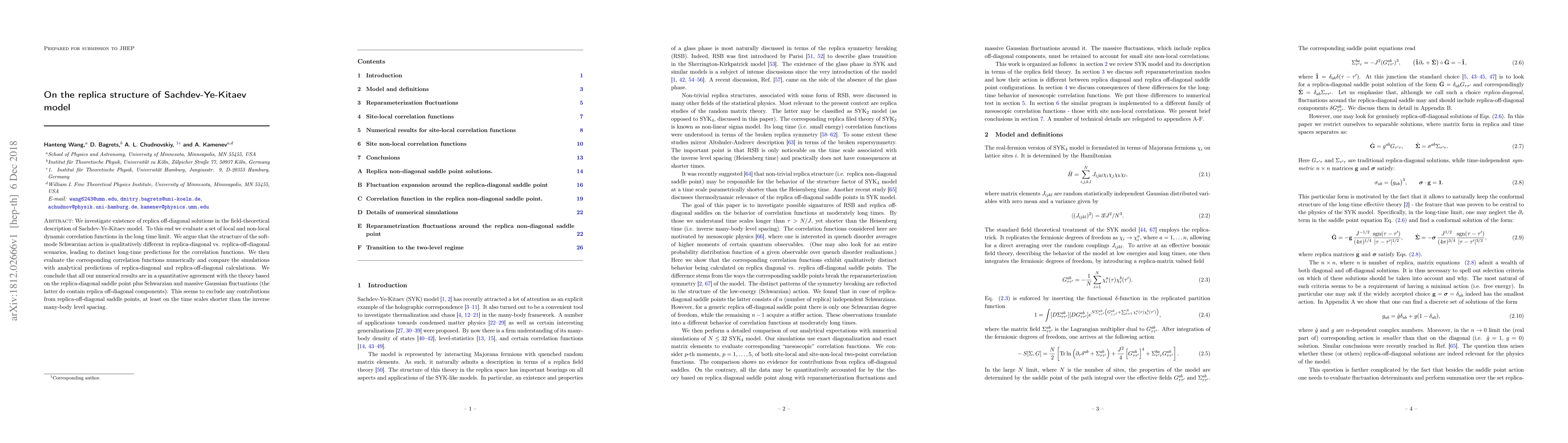 This paper investigates the replica structure of the Sachdev-Ye-Kitaev model, finding that numerical results match analytical predictions based on replica-diagonal scenarios, suggesting no significant contributions from replica-off-diagonal saddle points for short timescales.