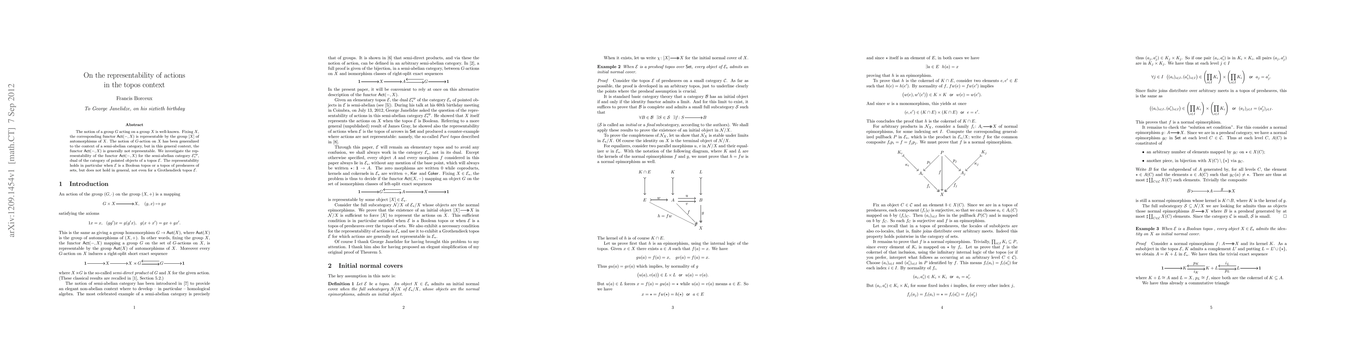 This paper explores the representability of functors corresponding to group actions in the context of semi-abelian categories, specifically focusing on the dual of the category of pointed objects in a topos E. It finds that representability holds for Boolean topoi and topoi of presheaves, but is generally not guaranteed even for Grothendieck topoi.