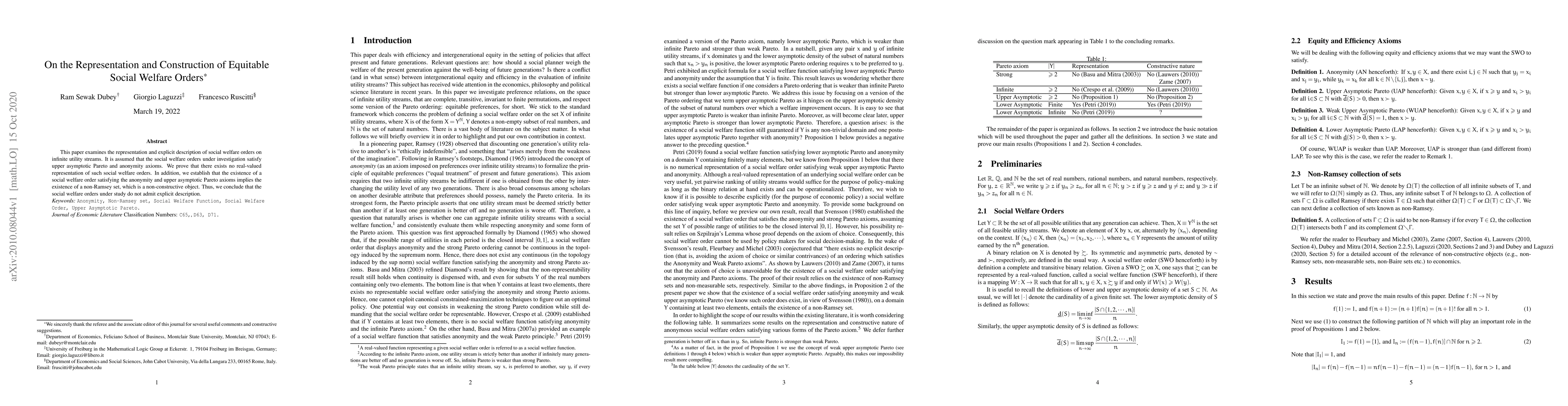 Researchers found that certain social welfare orders can't be explicitly described, and their existence leads to non-constructive objects, challenging the idea of representing infinite utility streams.