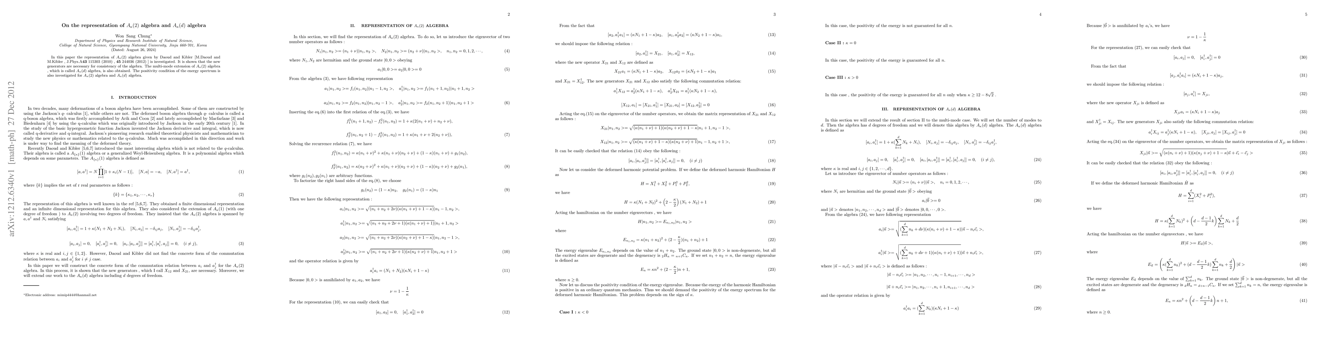 In this paper the representation of $A_{\kk}(2)$ algebra given by Daoud and Kibler [M.Daoud and M.Kibler, J.Phys.A 43 115303 (2010), 45 244036 (2012)] is investigated. It is shown that the new generators are necessary for consistency of the algebra. The multi-mode extension of $A_{\kk}(2)$ algebra, which is called $A_{\kk}(d)$ algebra, is also obtained. The positivity condition of the energy spectrum is also investigated for $A_{\kk}(2)$ algebra and $A_{\kk}(d)$ algebra.