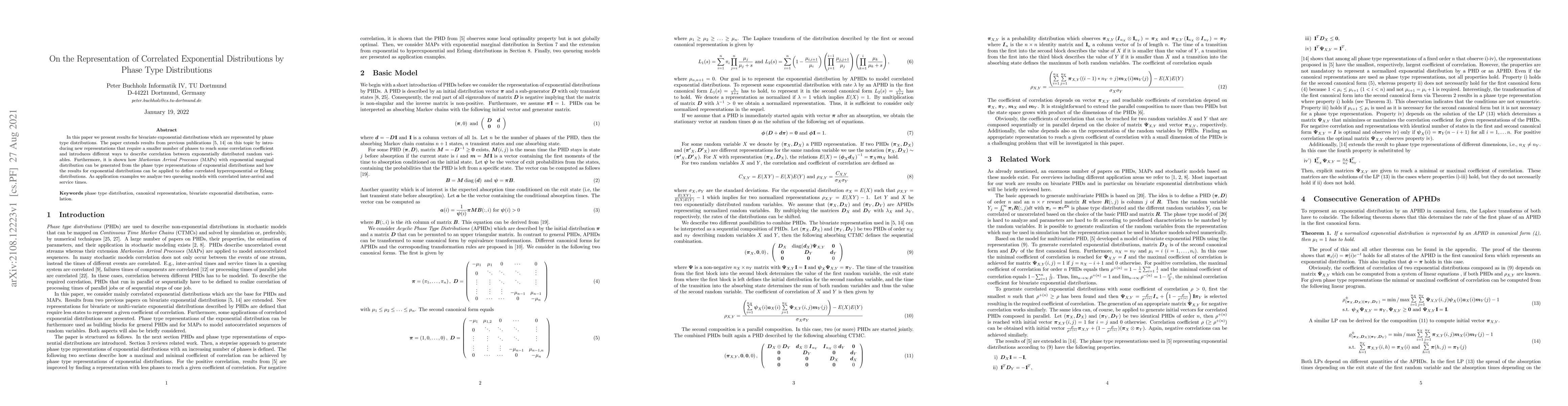 In this paper we present results for bivariate exponential distributions which are represented by phase type distributions. The paper extends results from previous publications [5, 14] on this topic by introducing new representations that require a smaller number of phases to reach some correlation coefficient and introduces different ways to describe correlation between exponentially distributed random variables. Furthermore, it is shown how Markovian Arrival Processes (MAPs) with exponential marginal distribution can be generated from the phase type representations of exponential distributions and how the results for exponential distributions can be applied to define correlated hyperexponential or Erlang distributions. As application examples we analyze two queueing models with correlated inter-arrival and service times.
