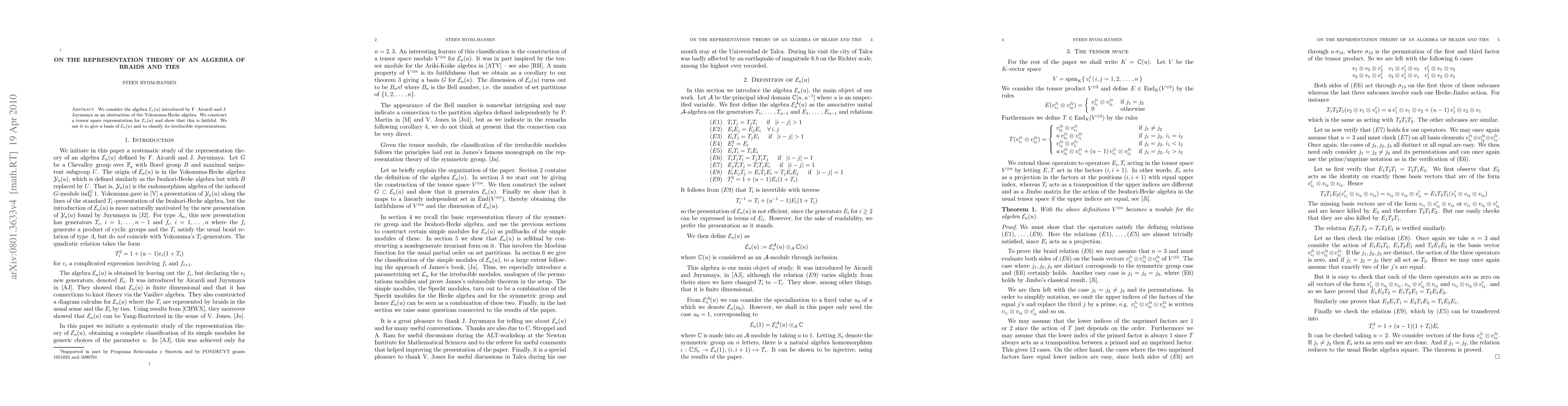 This paper introduces a tensor space representation for the algebra ${ extcal E}_n(u)$, showing it is faithful, and uses this to give a basis for ${ extcal E}_n(u)$ and classify its irreducible representations.