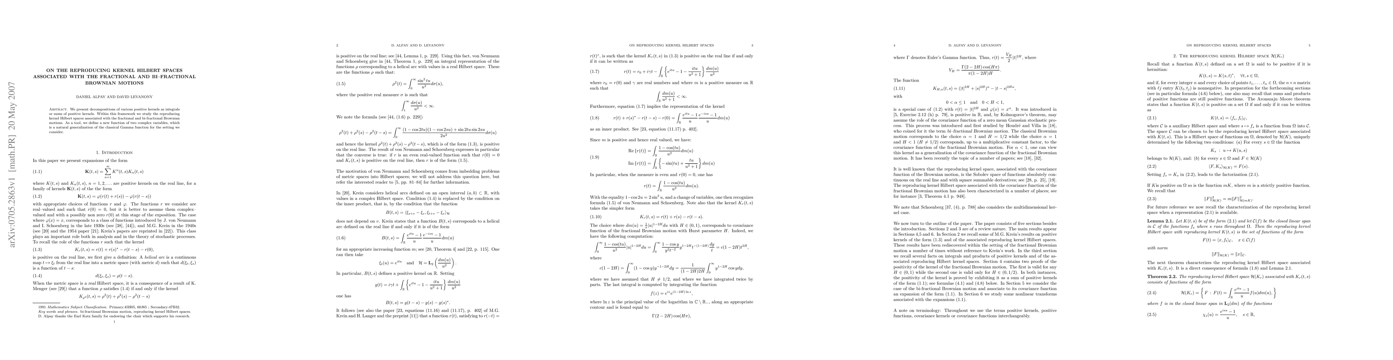This paper decomposes positive kernels into integrals or sums and explores the reproducing kernel Hilbert spaces linked to fractional and bi-fractional Brownian motions. It introduces a new function of two complex variables, extending the classical Gamma function, to facilitate these studies.