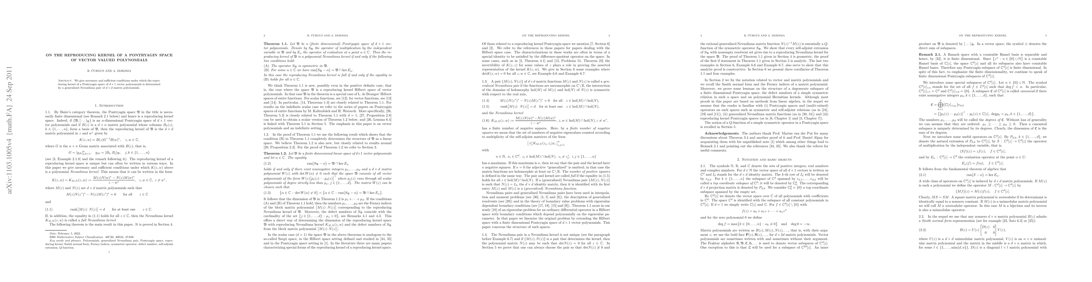 Summary: This paper establishes necessary and sufficient conditions for the reproducing kernel of a Pontryagin space of vector-valued polynomials to be determined by a generalized Nevanlinna pair of matrix polynomials. The findings provide a comprehensive framework for understanding the kernel's structure.