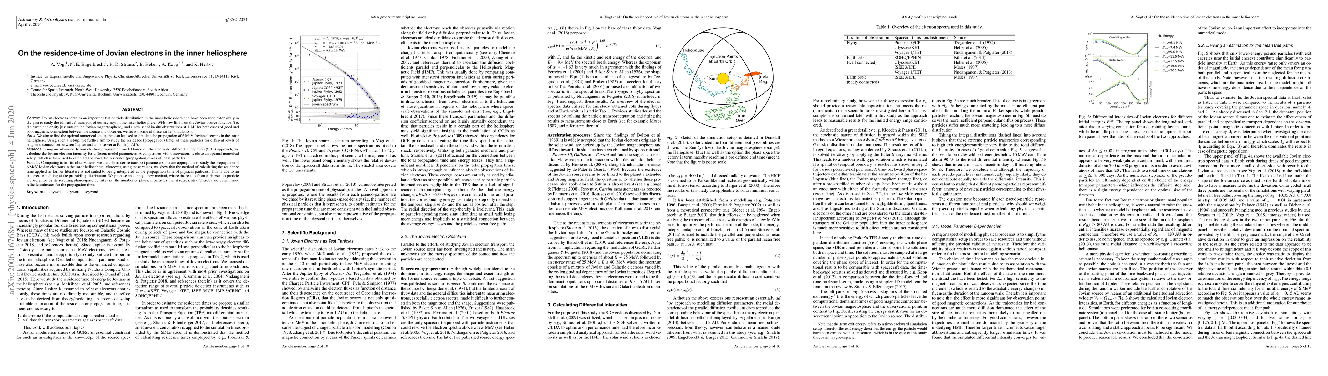 This paper investigates the optimal numerical model for simulating the propagation of 6 MeV Jovian electrons in the inner heliosphere, deriving transport parameters from in-situ observations. It proposes a new method to calculate the residence time, correcting previous interpretations and providing more reliable estimates.