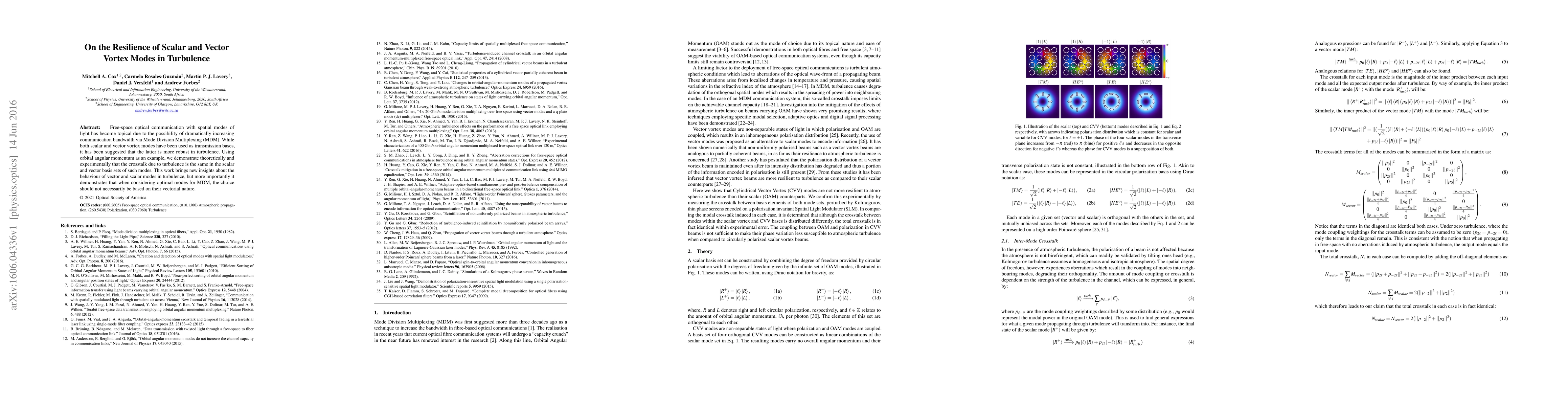 Free-space optical communication with spatial modes of light has become topical due to the possibility of dramatically increasing communication bandwidth via Mode Division Multiplexing (MDM). While both scalar and vector vortex modes have been used as transmission bases, it has been suggested that the latter is more robust in turbulence. Using orbital angular momentum as an example, we demonstrate theoretically and experimentally that the crosstalk due to turbulence is the same in the scalar and vector basis sets of such modes. This work brings new insights about the behaviour of vector and scalar modes in turbulence, but more importantly it demonstrates that when considering optimal modes for MDM, the choice should not necessarily be based on their vectorial nature.