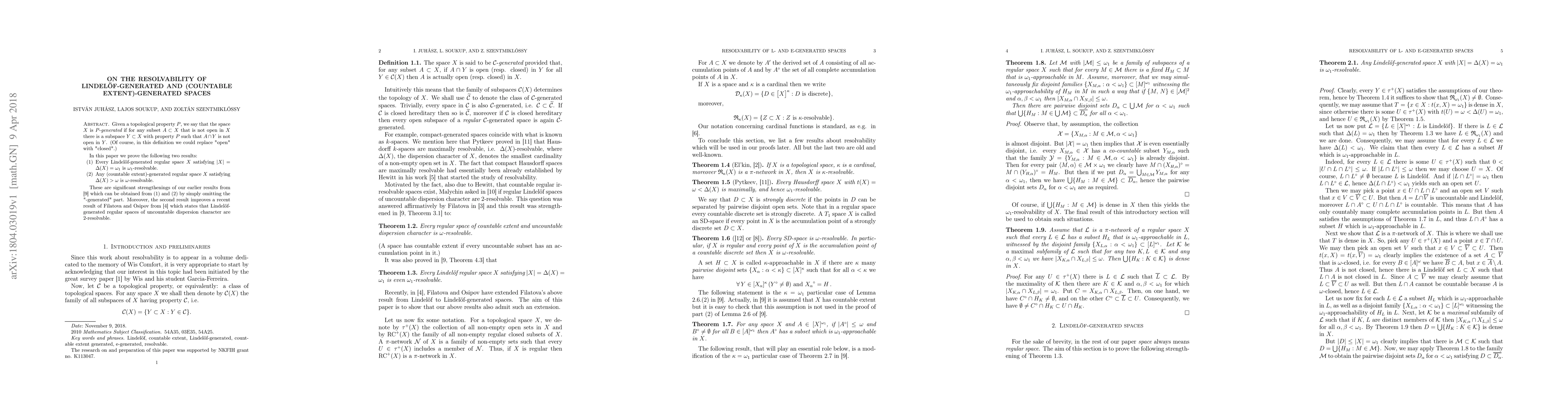 Given a topological property $P$, we say that the space $X$ is $P$-generated if for any subset $A\subset X$ that is not open in $X$ there is a subspace $Y \subset X$ with property $P$ such that $A\cap Y$ is not open in $Y$. (Of course, in this definition we could replace "open" with "closed".) In this paper we prove the following two results: (1) Every Lindel\"of-generated regular space $X$ satisfying $|X|=\Delta(X)={\omega}_1$ is ${\omega}_1$-resolvable. (2) Any (countable extent)-generated regular space $X$ satisfying $\Delta(X)>{\omega}$ is ${\omega}$-resolvable. These are significant strengthenings of our earlier results from [JSSz] which can be obtained from (1) and (2) by simply omitting the "-generated" part. Moreover, the second result improves a recent result of Filatova and Osipov from [FO] which states that Lindel\"of-generated regular spaces of uncountable dispersion character are 2-resolvable. [FO] Maria A. Filatova, Alexander V. Osipov On resolvability of Lindel\"of generated spaces, arxiv:1712.00803. Siberian Electronic Mathematical Reports, Vol. 14, (2017) pp. 1444-1444. [JSSz] Juh\'asz, Istv\'an; Soukup, Lajos; Szentmikl\'ossy, Zolt\'an, Regular spaces of small extent are ${\omega}$-resolvable. Fund. Math. 228 (2015), no. 1, 27-46.