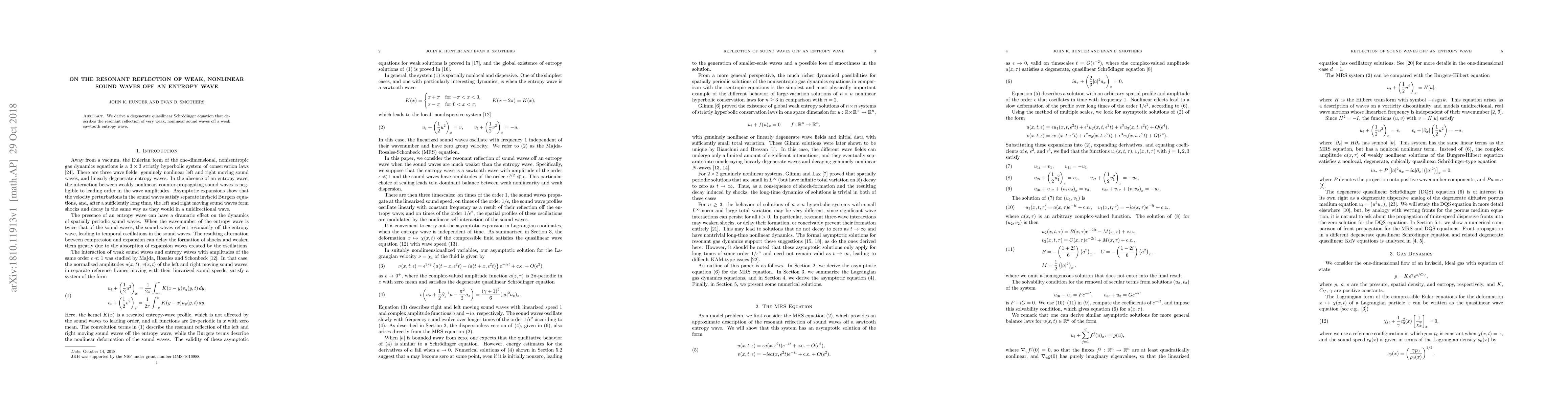 We derive a degenerate quasilinear Schr\"odinger equation that describes the resonant reflection of very weak, nonlinear sound waves off a weak sawtooth entropy wave.