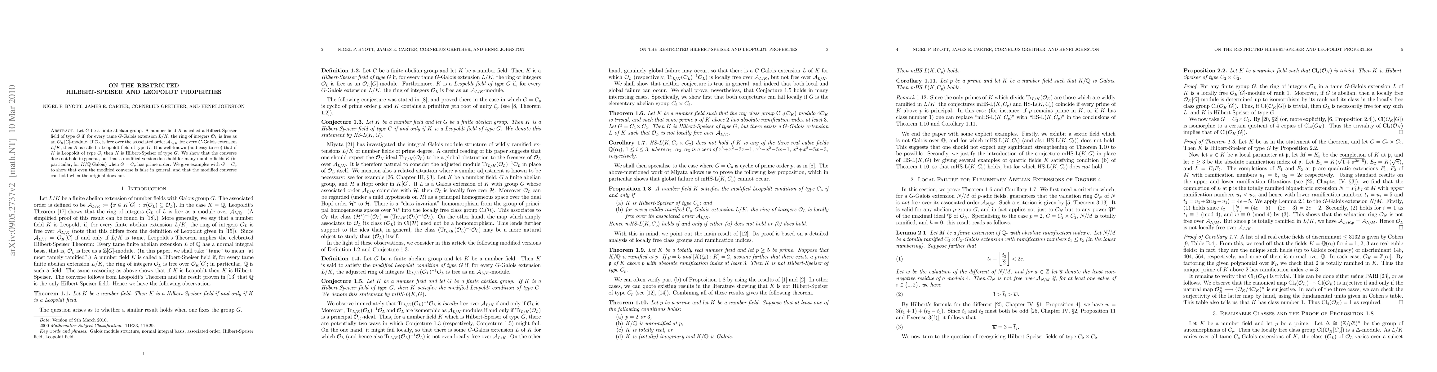 Let G be a finite abelian group. A number field K is called a Hilbert-Speiser field of type G if, for every tame G-Galois extension L/K, the ring of integers O_L is free as an O_K[G]-module. If O_L is free over the associated order A_{L/K} for every G-Galois extension L/K, then K is called a Leopoldt field of type G. It is well-known (and easy to see) that if K is Leopoldt of type G, then K is Hilbert-Speiser of type G. We show that the converse does not hold in general, but that a modified version does hold for many number fields K (in particular, for K/Q Galois) when G=C_p has prime order. We give examples with G=C_p to show that even the modified converse is false in general, and that the modified converse can hold when the original does not.