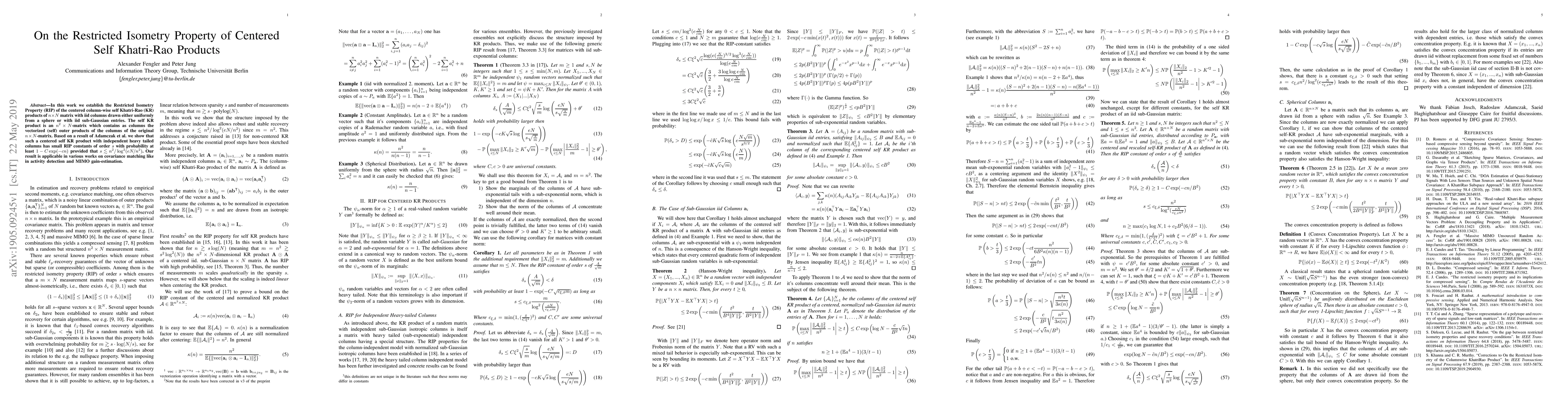 Researchers establish the Restricted Isometry Property of centered self Khatri-Rao products for matrices with independent columns, showing small RIP constants for certain distributions with high probability.