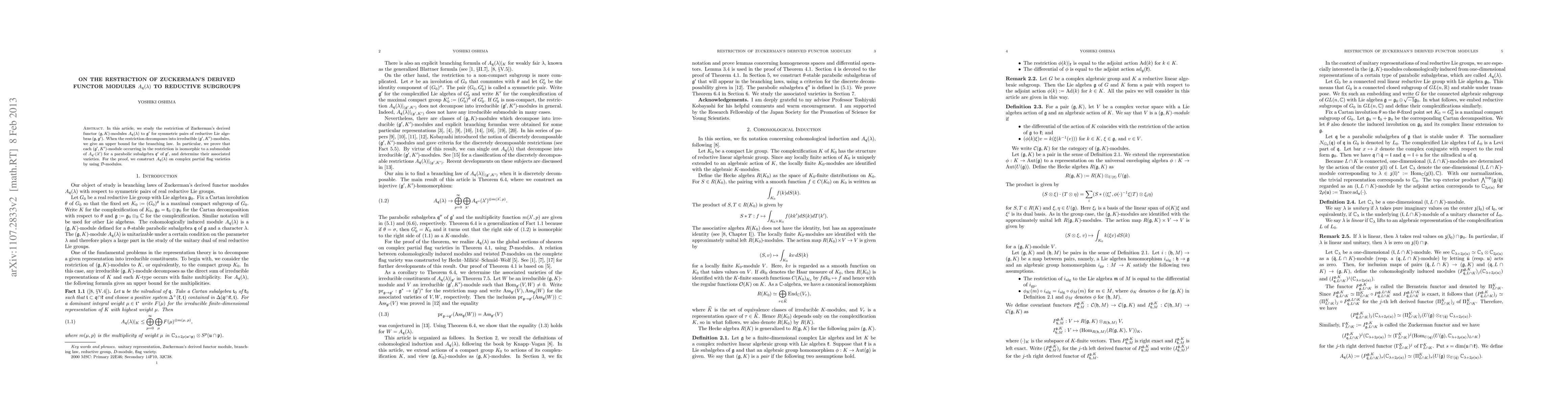 This paper investigates the restriction of Zuckerman's derived functor modules \( A_q(\lambda) \) to reductive subgroups \( g' \) in symmetric pairs of reductive Lie algebras. The authors provide an upper bound for the branching law and show that each irreducible \( (g',K') \)-module in the restriction is isomorphic to a submodule of \( A_q'(\lambda') \) for a parabolic subalgebra \( q' \) of \( g' \), determining their associated varieties.