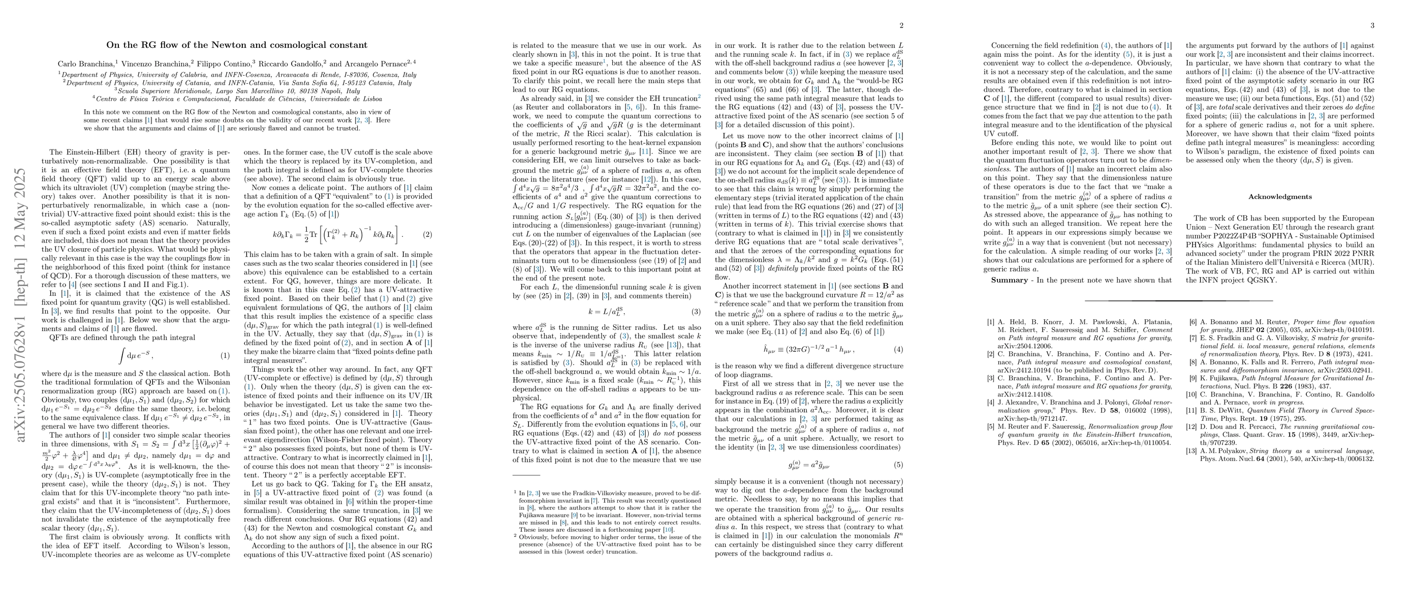 In this note we comment on the RG flow of the Newton and cosmological constants, also in view of some recent claims [1] that would rise some doubts on the validity of our recent work [2,3]. Here we show that the arguments and claims of [1] are seriously flawed and cannot be trusted.