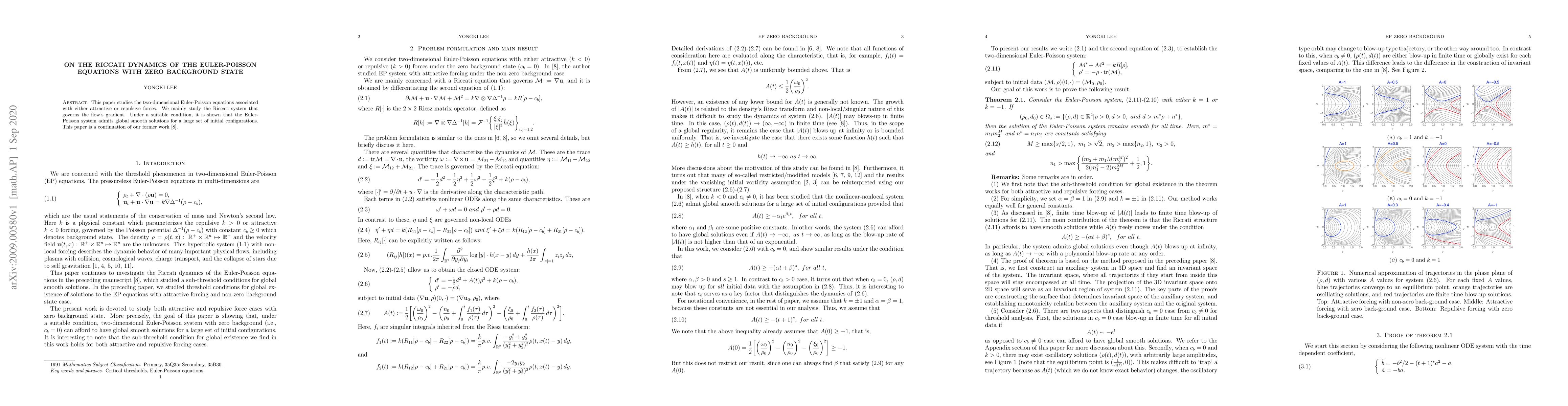 This paper investigates the two-dimensional Euler-Poisson equations under attractive or repulsive forces, focusing on the Riccati dynamics governing the flow's gradient. It demonstrates global smooth solutions for a broad set of initial conditions under certain conditions.