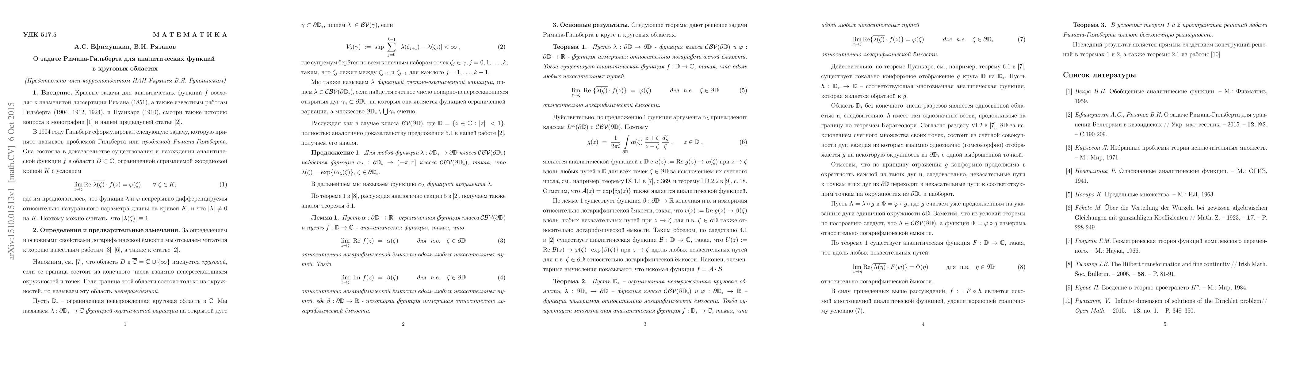 The paper proves the existence of single-valued and multivalent analytic solutions for the Riemann-Hilbert problem in circular domains, demonstrating infinite-dimensional solution spaces with coefficients of sigma-finite variation and measurable boundary data.