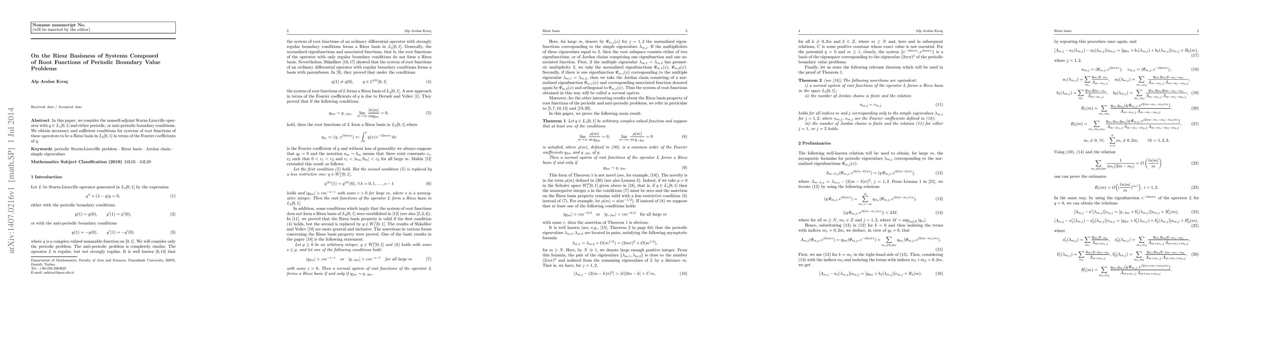 This paper investigates whether root functions of nonselfadjoint Sturm Liouville operators with periodic or antiperiodic boundary conditions form a Riesz basis in terms of their Fourier coefficients.