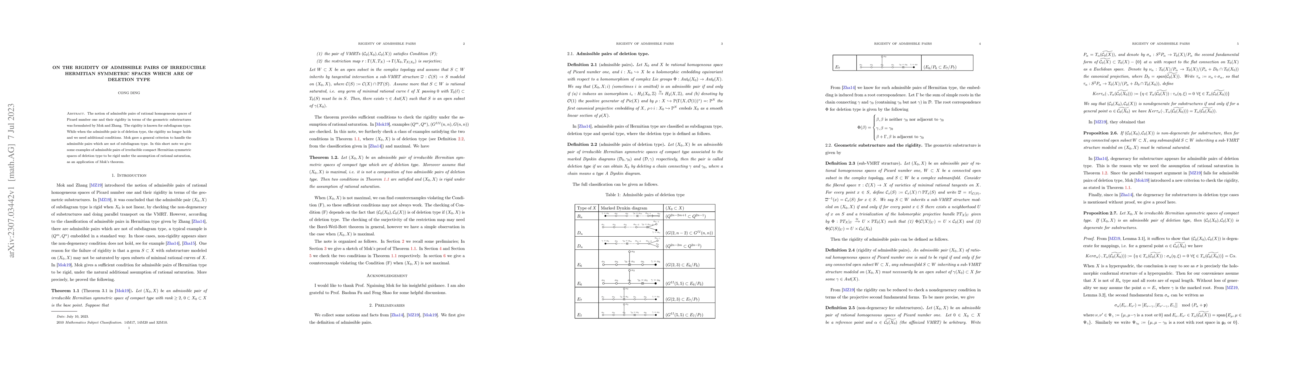 This paper explores the rigidity of admissible pairs of rational homogeneous spaces of Picard number one, specifically focusing on those of deletion type. While rigidity generally fails for deletion type pairs, the authors provide examples showing that under the condition of rational saturation, these pairs can still exhibit rigidity, applying Mok's general criterion.