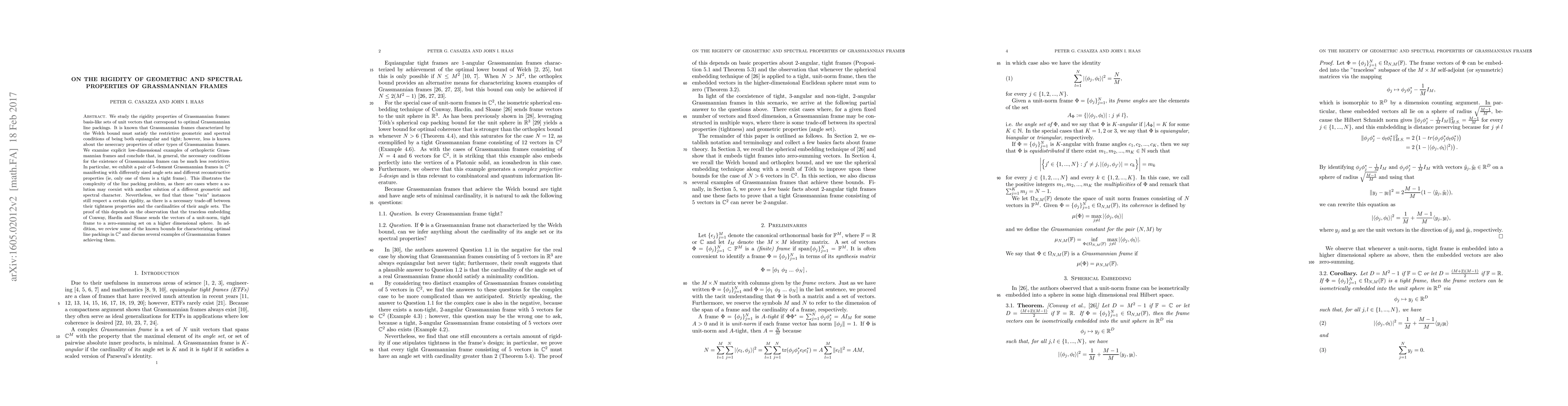 We study the rigidity properties of Grassmannian frames: basis-like sets of unit vectors that correspond to optimal Grassmannian line packings. It is known that Grassmannian frames characterized by the Welch bound must satisfy the restrictive geometric and spectral conditions of being both equiangular and tight; however, less is known about the necessary properties of other types of Grassmannian frames. We examine explicit low-dimensional examples of orthoplectic Grassmannian frames and conclude that, in general, the necessary conditions for the existence of Grassmannian frames can be much less restrictive. In particular, we exhibit a pair of $5$-element Grassmannian frames in $\mathbb C^2$ manifesting with differently sized angle sets and different reconstructive properties (ie, only one of them is a tight frame). This illustrates the complexity of the line packing problem, as there are cases where a solution may coexist with another solution of a different geometric and spectral character. Nevertheless, we find that these "twin" instances still respect a certain rigidity, as there is a necessary trade-off between their tightness properties and the cardinalities of their angle sets. The proof of this depends on the observation that the traceless embedding of Conway, Hardin and Sloane sends the vectors of a unit-norm, tight frame to a zero-summing set on a higher dimensional sphere. In addition, we review some of the known bounds for characterizing optimal line packings in $\mathbb C^2$ and discuss several examples of Grassmannian frames achieving them.