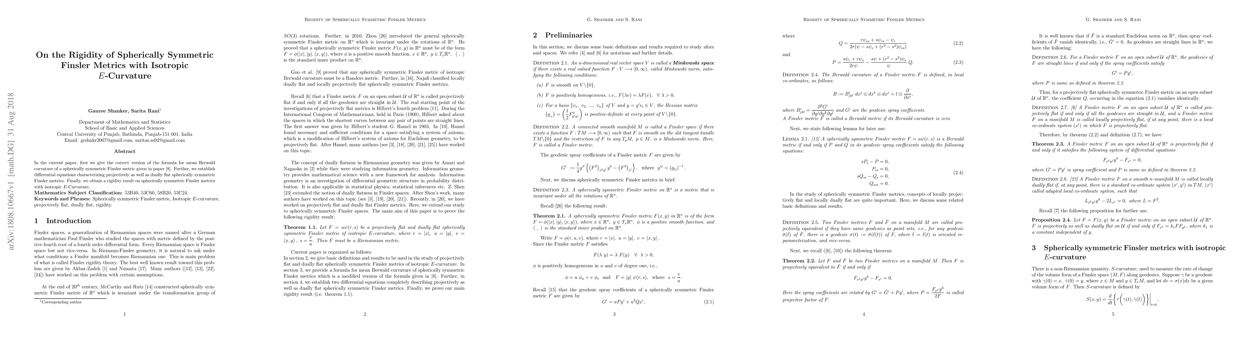 This paper corrects the mean Berwald curvature formula for spherically symmetric Finsler metrics and derives differential equations for projectively and dually flat metrics. It concludes with a rigidity result for spherically symmetric Finsler metrics with isotropic $E$-Curvature.