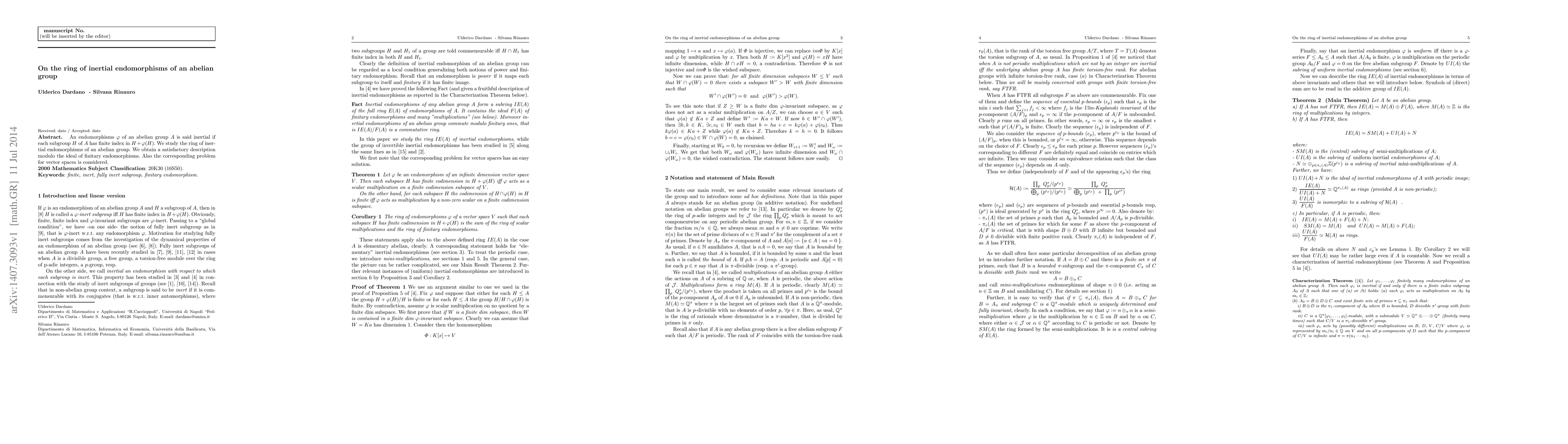 This paper studies inertial endomorphisms of abelian groups, which preserve finite index subgroups, and provides a description of the ring of inertial endomorphisms modulo finitary endomorphisms.