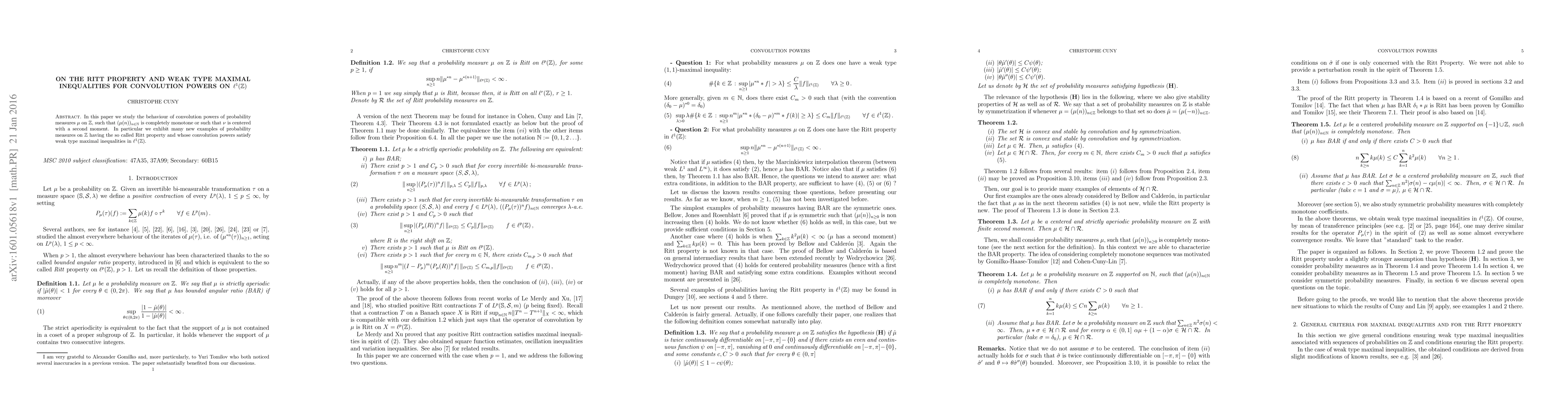 This paper explores the behavior of convolution powers of specific probability measures on $\mathbb{Z}$ that exhibit the Ritt property, focusing on those with completely monotone sequences or centered measures with a second moment. It identifies new examples demonstrating these measures' compliance with weak type maximal inequalities in $\ell^1(\mathbb{Z})$.