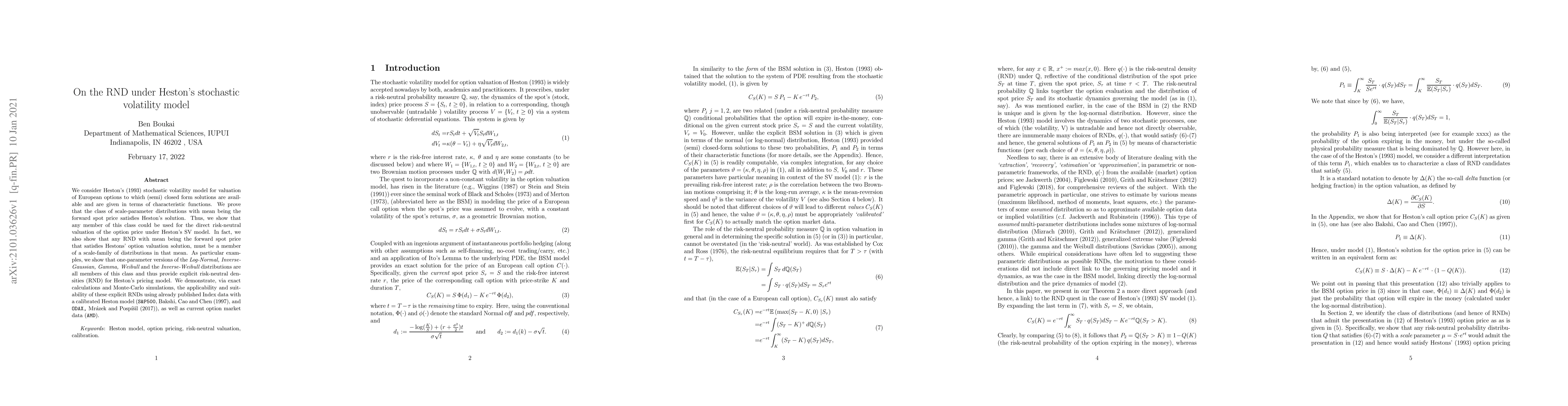 This paper explores Heston's stochastic volatility model for European option valuation, demonstrating that scale-parameter distributions with mean forward spot prices satisfy Heston's solution. It shows that any such distribution, including Log-Normal, Inverse-Gaussian, Gamma, Weibull, and Inverse-Weibull, can be used for risk-neutral valuation, validated through exact calculations and Monte-Carlo simulations using S&P500, ODAX, and AMD data.