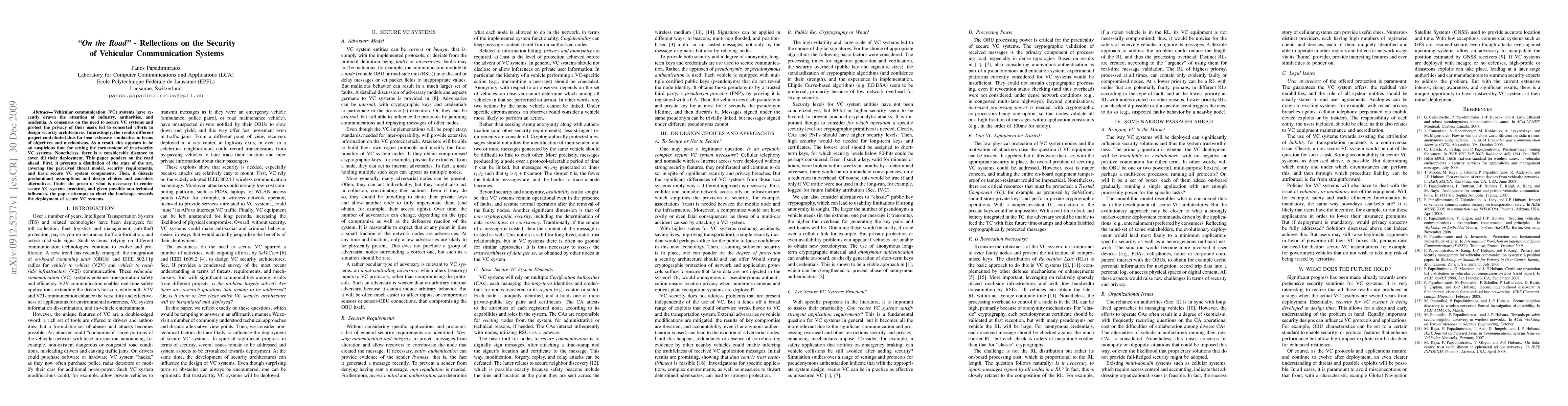 Vehicular communication (VC) systems have recently drawn the attention of industry, authorities, and academia. A consensus on the need to secure VC systems and protect the privacy of their users led to concerted efforts to design security architectures. Interestingly, the results different project contributed thus far bear extensive similarities in terms of objectives and mechanisms. As a result, this appears to be an auspicious time for setting the corner-stone of trustworthy VC systems. Nonetheless, there is a considerable distance to cover till their deployment. This paper ponders on the road ahead. First, it presents a distillation of the state of the art, covering the perceived threat model, security requirements, and basic secure VC system components. Then, it dissects predominant assumptions and design choices and considers alternatives. Under the prism of what is necessary to render secure VC systems practical, and given possible non-technical influences, the paper attempts to chart the landscape towards the deployment of secure VC systems.