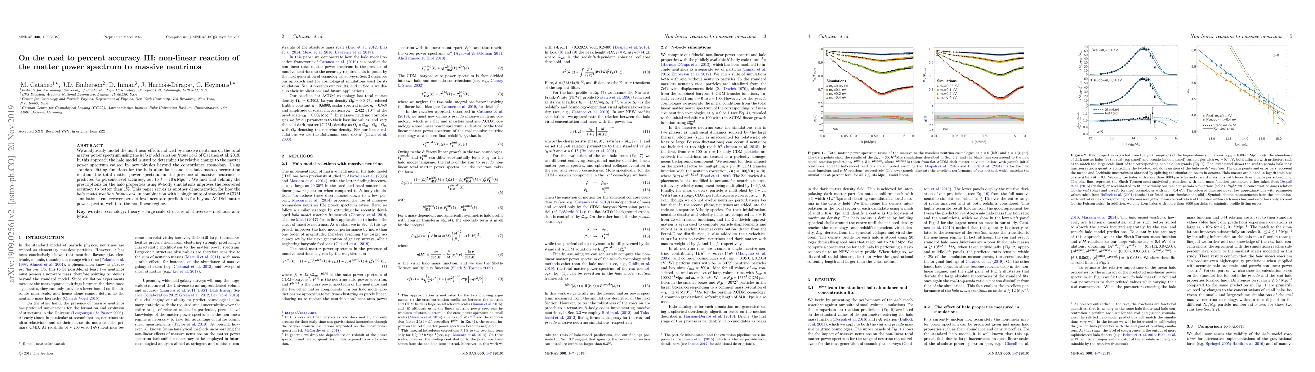 This paper analytically models the non-linear effects of massive neutrinos on the matter power spectrum using the halo model reaction framework. The study predicts the total matter power spectrum with percent-level accuracy, showing that incorporating $N$-body simulations improves accuracy to better than 1%.