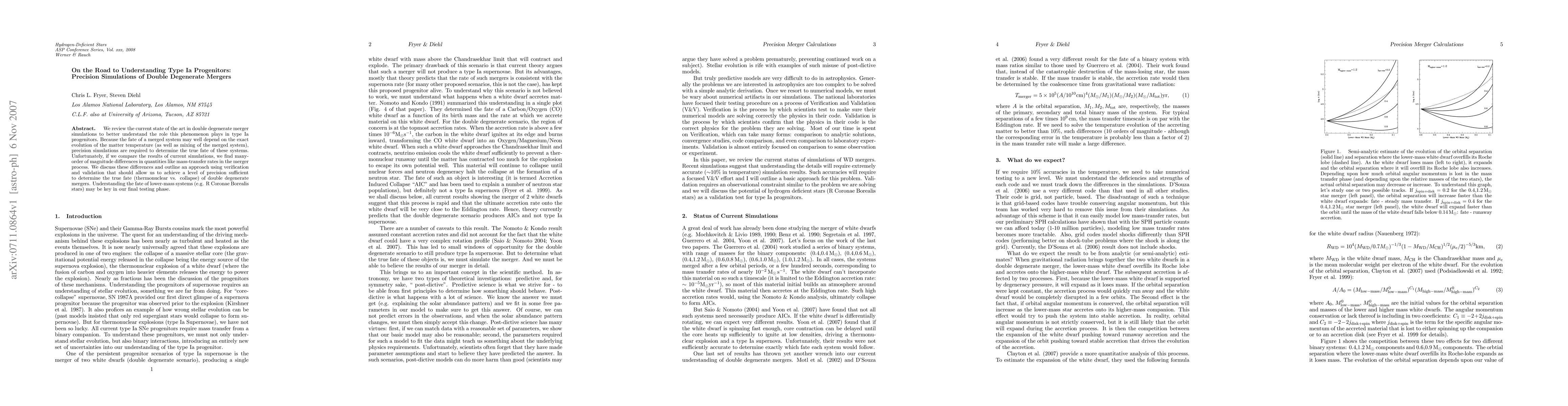 We review the current state of the art in double degenerate merger simulations to better understand the role this phenomenon plays in type Ia progenitors. Because the fate of a merged system may well depend on the exact evolution of the matter temperature (as well as mixing of the merged system), precision simulations are required to determine the true fate of these systems. Unfortunately, if we compare the results of current simulations, we find many-order of magnitude differences in quantities like mass-transfer rates in the merger process. We discuss these differences and outline an approach using verification and validation that should allow us to achieve a level of precision sufficient to determine the true fate (thermonuclear vs. collapse) of double degenerate mergers. Understanding the fate of lower-mass systems (e.g. R Coronae Borealis stars) may be key in our final testing phase.