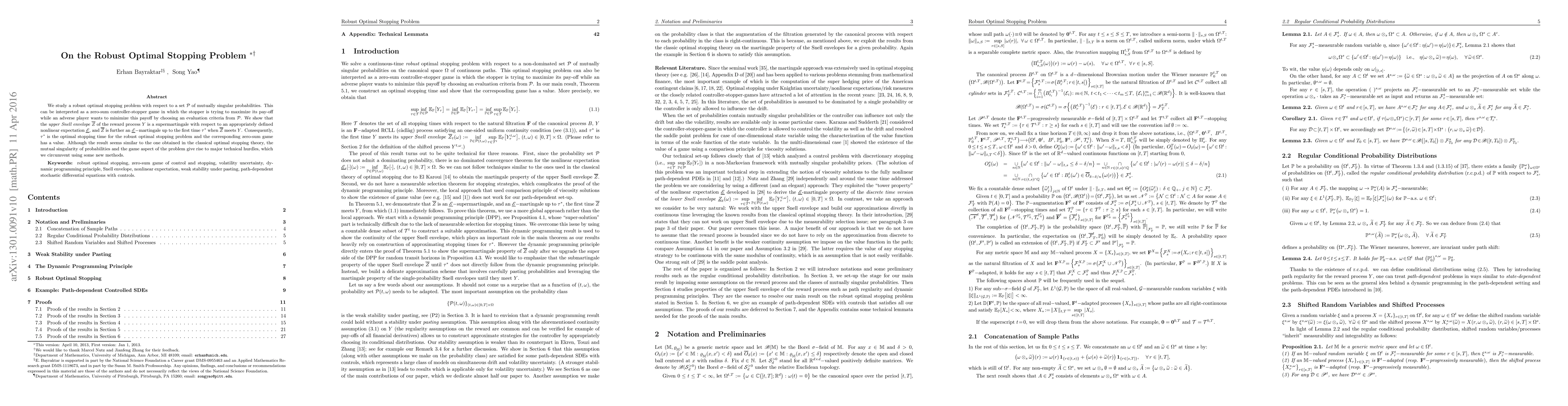 This paper investigates a robust optimal stopping problem involving a set of mutually singular probabilities, framing it as a zero-sum game. It demonstrates that the upper Snell envelope is a supermartingale under a nonlinear expectation, leading to the identification of an optimal stopping time $\t^*$, which resolves the game and provides a solution to the robust problem, despite the technical challenges posed by the singular probabilities.