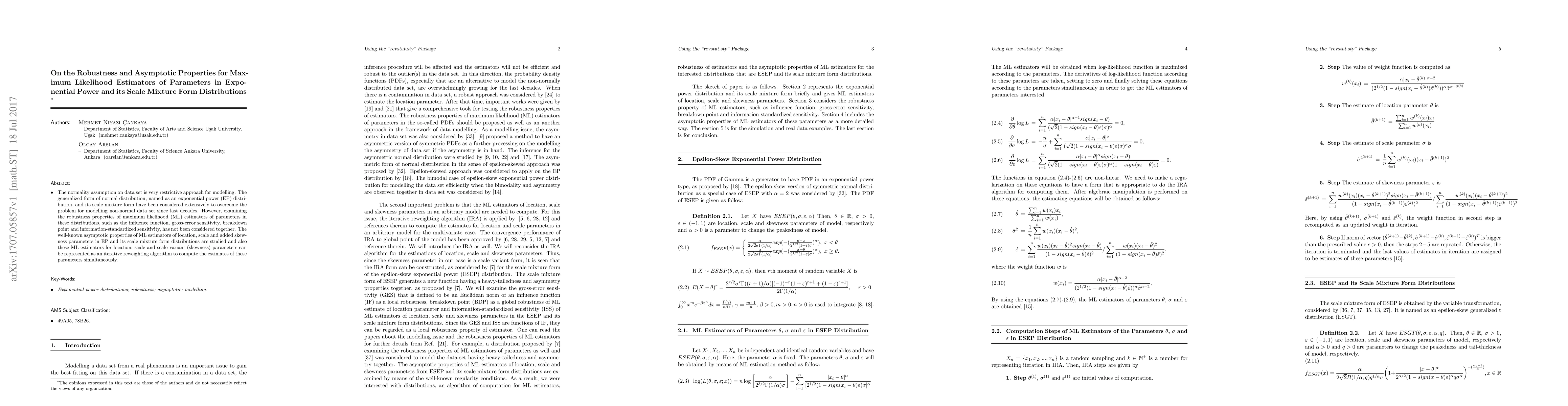 This paper investigates the robustness and asymptotic properties of maximum likelihood estimators for parameters in exponential power and its scale mixture form distributions, addressing the limitations of the normality assumption in data modeling. It also explores the estimators' breakdown point and sensitivity, and presents an iterative reweighting algorithm for computing these estimates.
